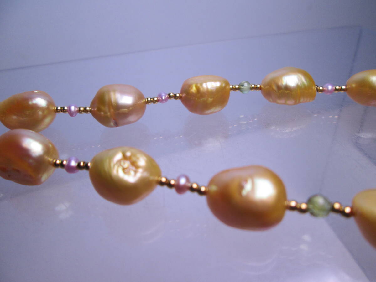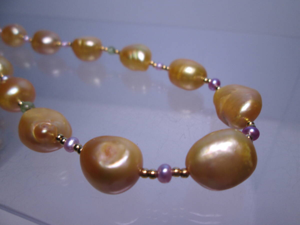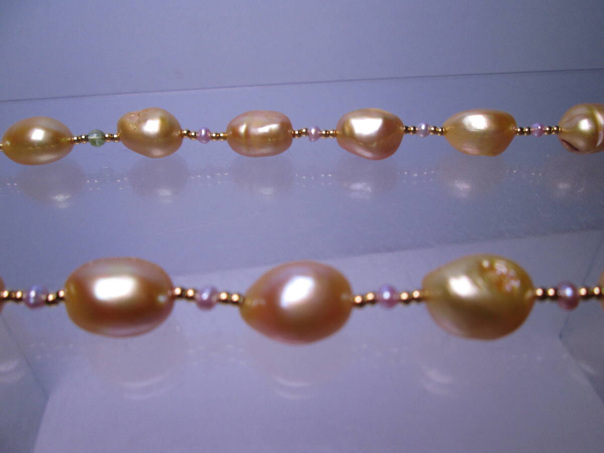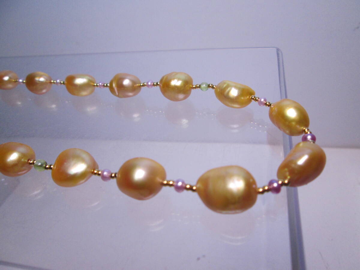☆ゴールドカラーパール&ビーズ ロングネックレス 67cm~73cm