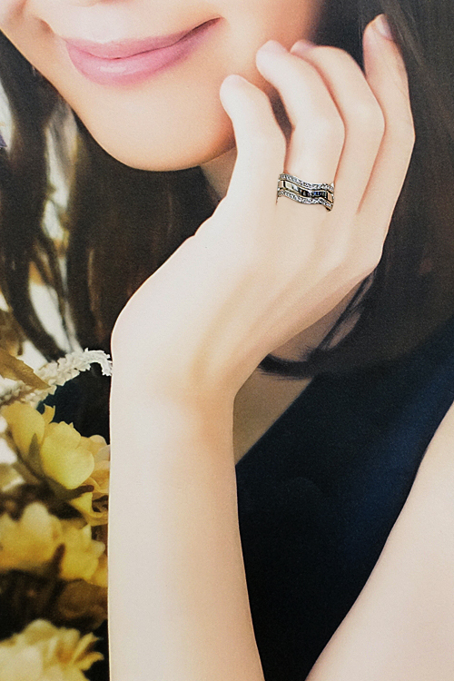 ■コメント | ヴァンドーム青山の、3連のウェーブラインがエレガントなリングです 鏡面仕上げの厚めのリングにダイヤモンドの輝きが、モダンな雰囲気を漂わせます |