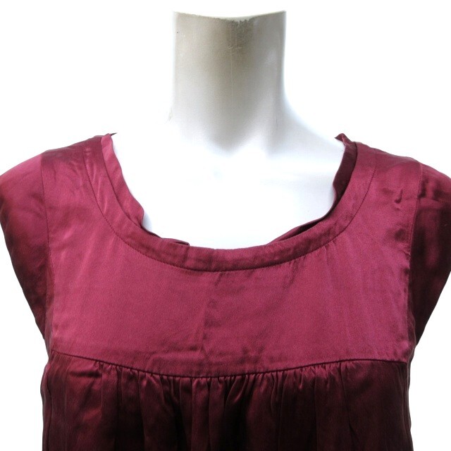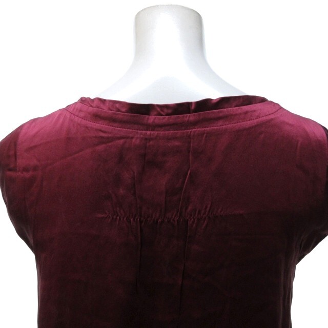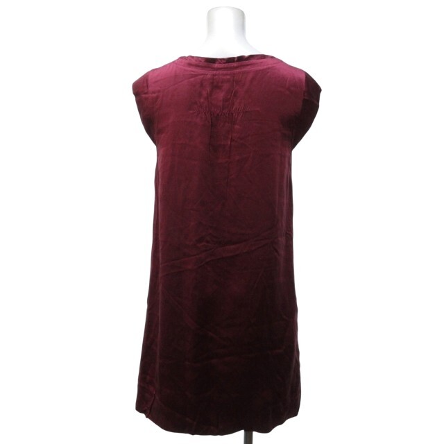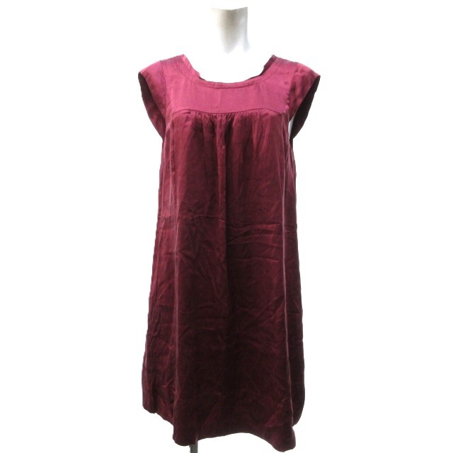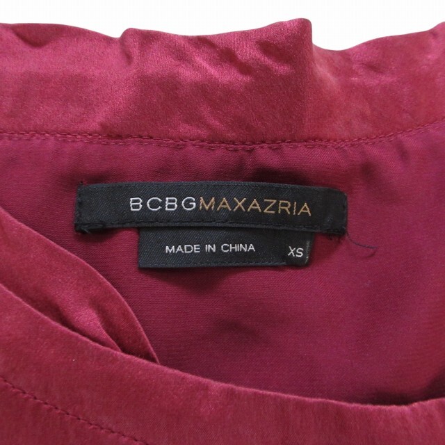 ビーシービージーマックスアズリア シルク ドレス ワンピース ミニ丈 フレンチスリーブ ギャザー Aライン ドレープ ワインレッド XS