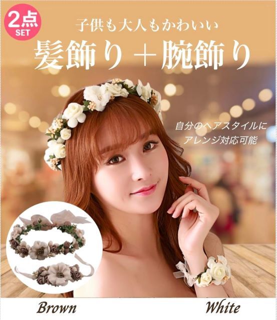 未使用 花かんむり 華やか かわいい 髪飾り腕飾り2点セット パーティー 結婚式 撮影 衣装