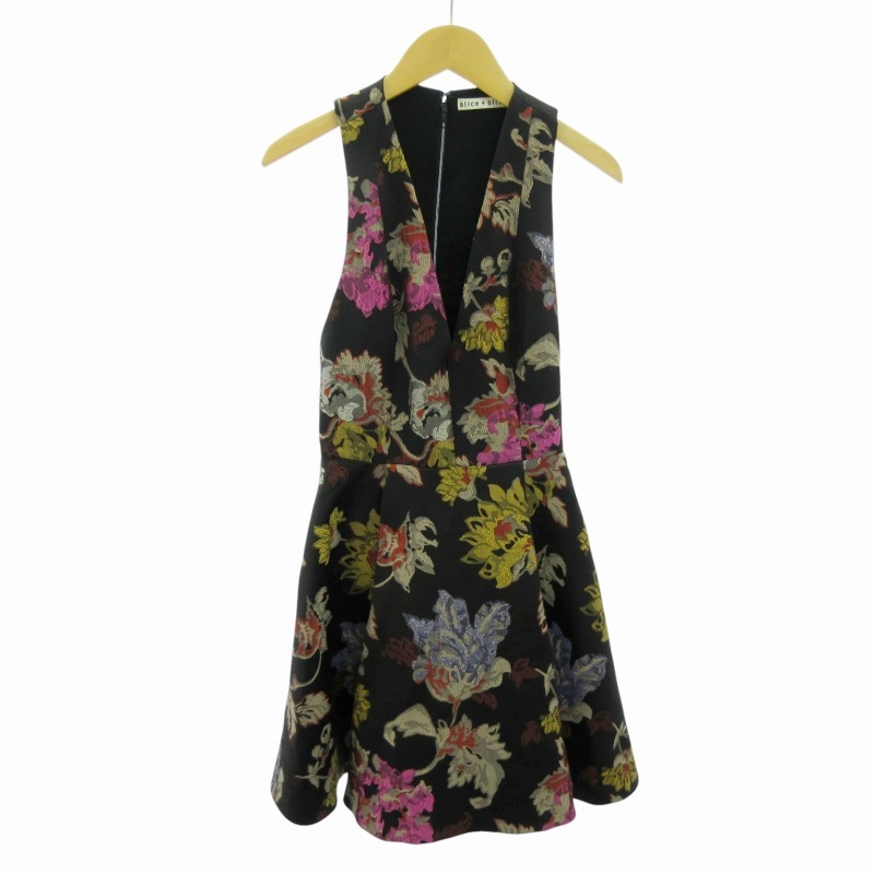 アリスオリビア alice + olivia 美品 ワンピース 花柄 ノースリーブ ひざ丈 黒 ブラック 0728 ■MET1 レディース