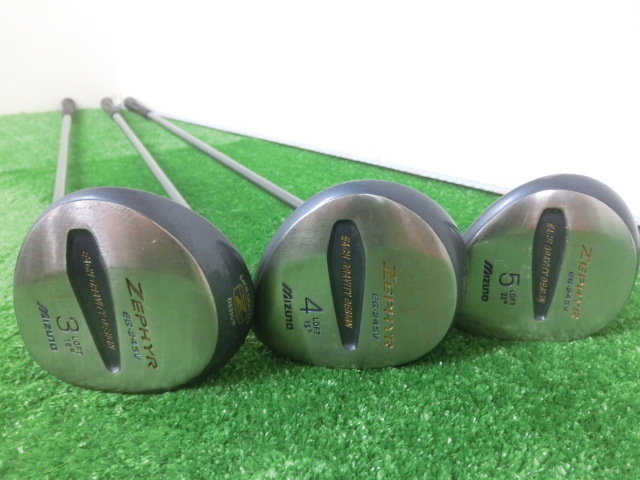 ♪MIZUNO ミズノ Zephyr EG-245V 3W/4W/5W フェアウェイウッド 3点セット 16/19/22° /純正 シャフト TECHNO FLEX 2770 FLEX-R H1498♪