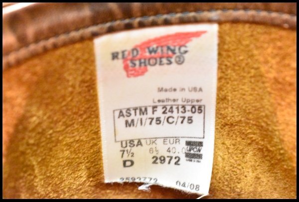 【7.5D 良品 08年】レッドウィング 2972 エンジニア 茶 カッパー ラフ&タフ スチールトゥ ブラウン ブーツ redwing HOPESMORE