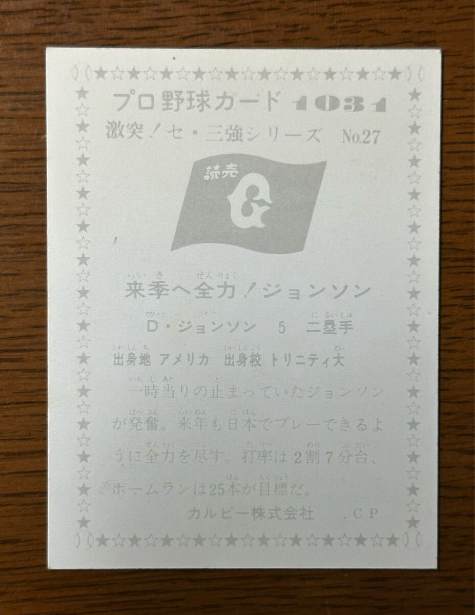カルビー プロ野球カード’76 No.1031 激突!セ・三強シリーズ D.ジョンソン(巨人)
