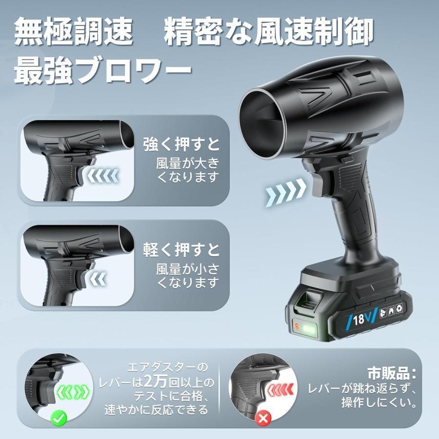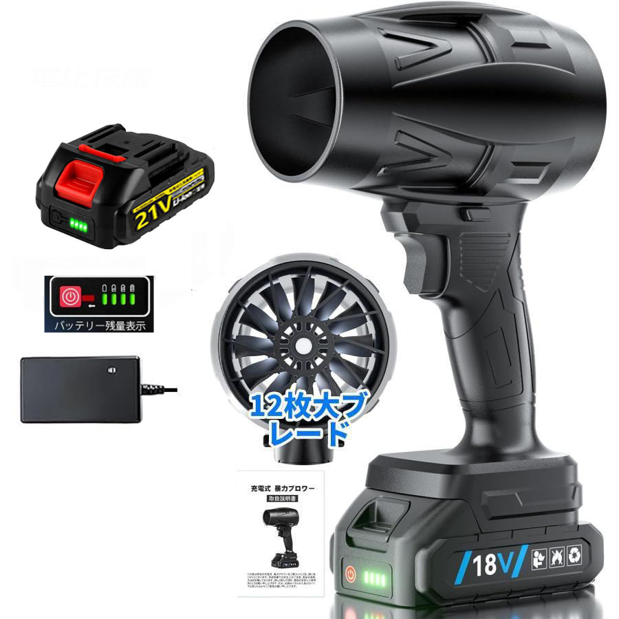 ブロワー 専用12個大ファンブレードブロアー 充電式 マキタ電池互換 21Vバッテリー*1 80mm風入口洗車 ブロワー 65m/s大風速 120000rpm