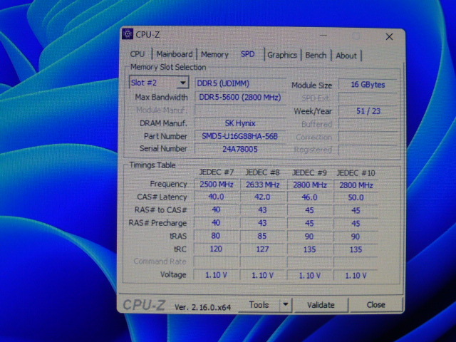 メモリ デスクトップパソコン用 SanMax SK hynixチップ DDR5-5600 PC5-44800 16GB 起動確認済みです