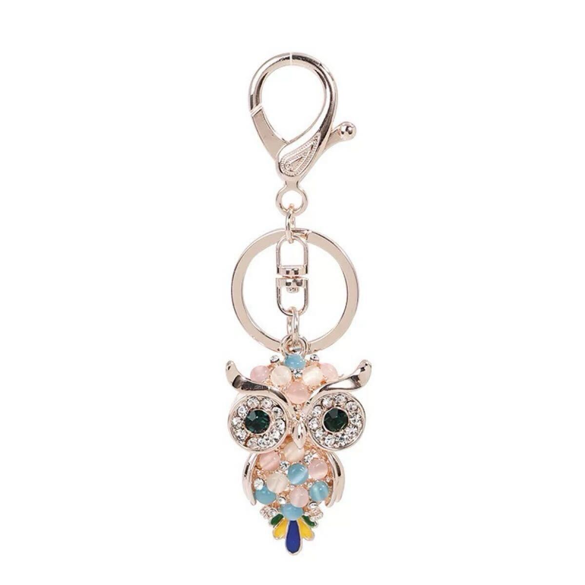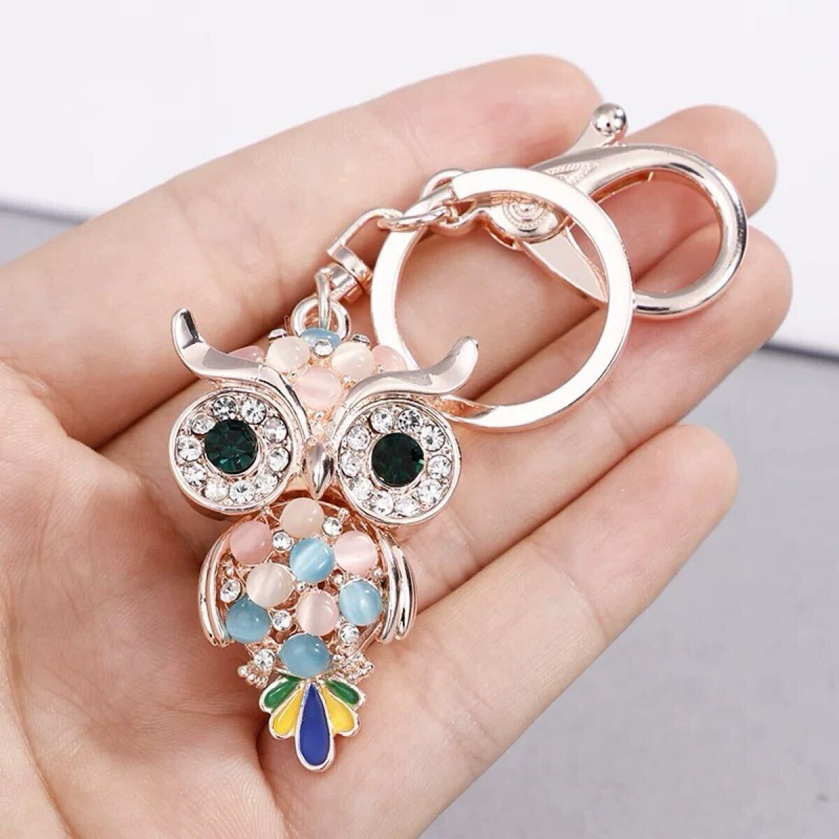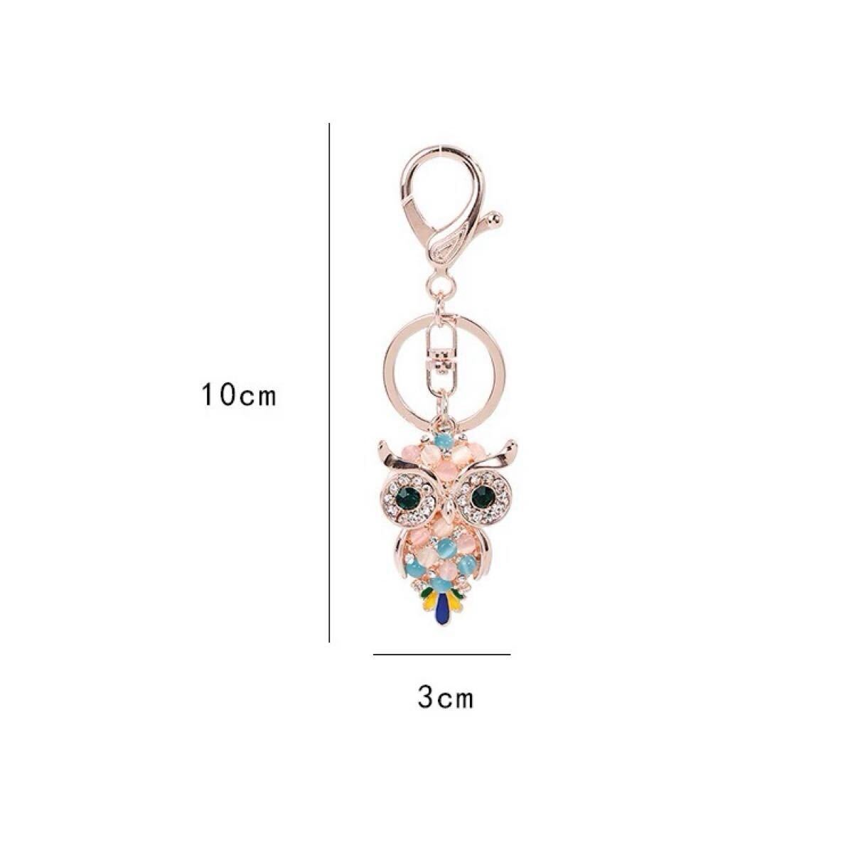 ラインストーンがキラキラ輝くフクロウモチーフのキーホルダー。 バッグやポーチのチャームにもオススメです♪