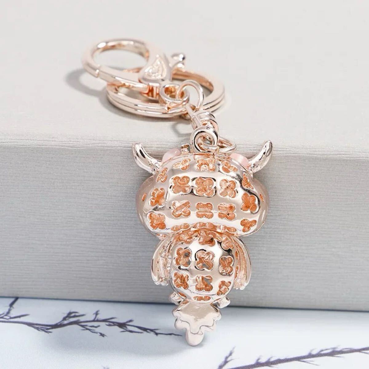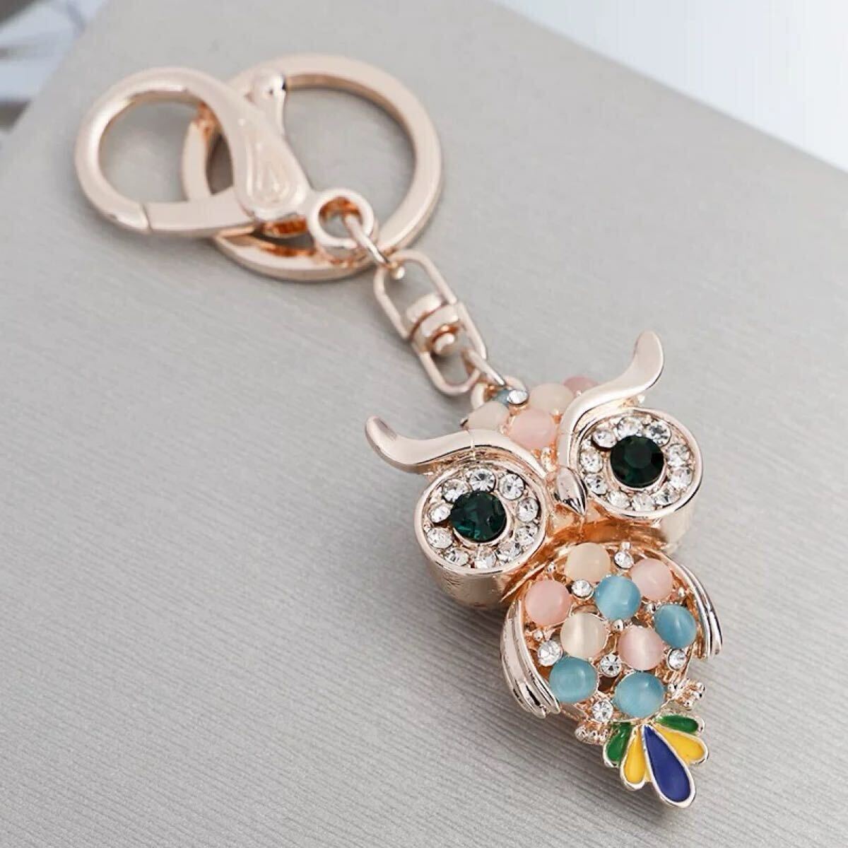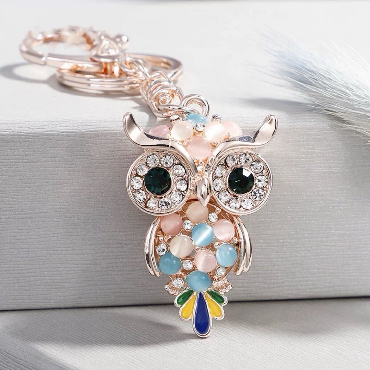 ラインストーンがキラキラ輝くフクロウモチーフのキーホルダー。 バッグやポーチのチャームにもオススメです♪