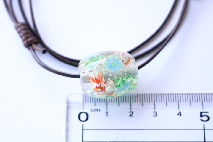 とんぼ玉のサイズは24mm×20mmです。重さは19gです。