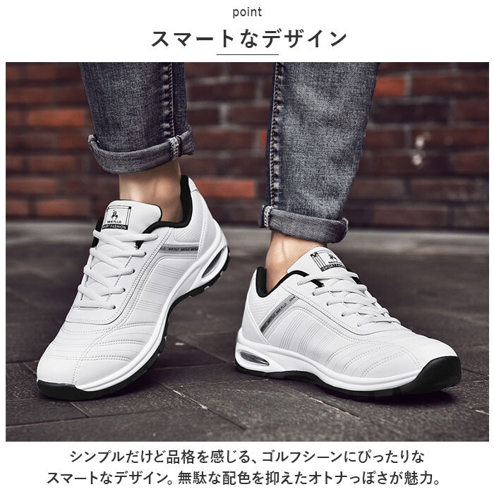 | 商品説明 | ・・マイクロファイバーレザーを使用。丈夫でスマートなデザインの ゴルフシューズ が登場。 ・【マイクロファイバーレザー】 ・第3世代の人工皮革と言われている素材、マイクロファイバーレザー。傷がつきにくく丈夫。お手入れのしやすさも人気の秘密! ・【スマートなデザイン】 ・シンプルだけど品格を感じる、ゴルフシーンにぴったりなスマートなデザイン。無駄な配色を抑えたオトナっぽさが魅力。 ・【エアーインIN】 ・地面からの衝撃をしっかり吸収してくれる、エアーIN設計。長時間のプレーでも足の疲れを感じにくい。 ・【外せるインソール】 ・インソールは取り外しOK。いつでも気軽に洗えるのが嬉しいポイント。 ・【フィット感】 ・優れたフィット感で足を包み込む。スイング時の安定感が抜群。足元から自信をつけるゴルフシューズ。 ・【滑りにくい】 ・靴裏には滑りにくいよう加工を施し、歩きやすさに配慮。雨の日でも地面をしっかりグリップしてくれる安心の仕様。 ・【ゴルフ以外でも】 ・ゴルフなどのスポーツシーンではもちろん、通勤通学などの普段使い、オシャレ着用のスニーカーに、など幅広く使える。 |