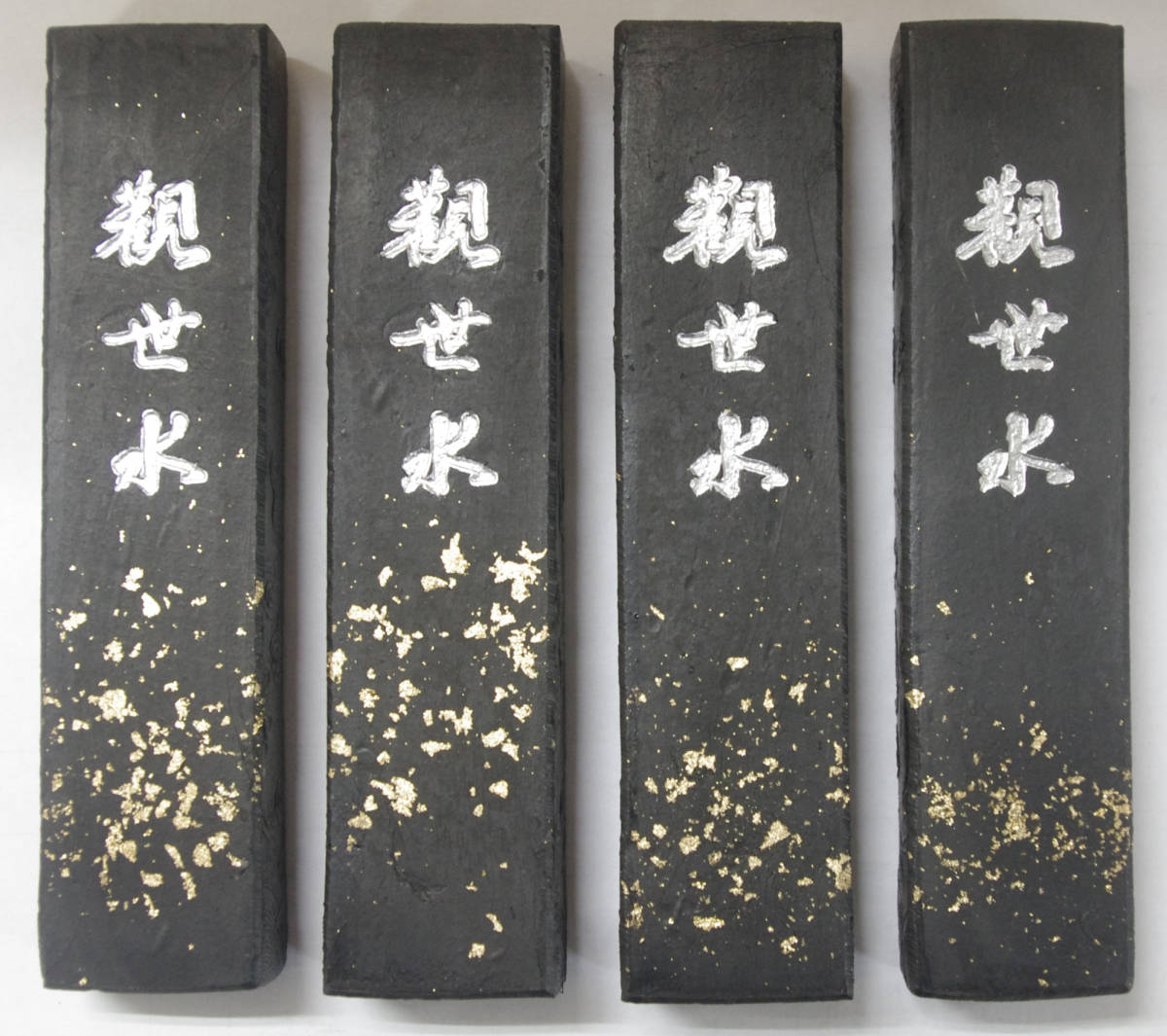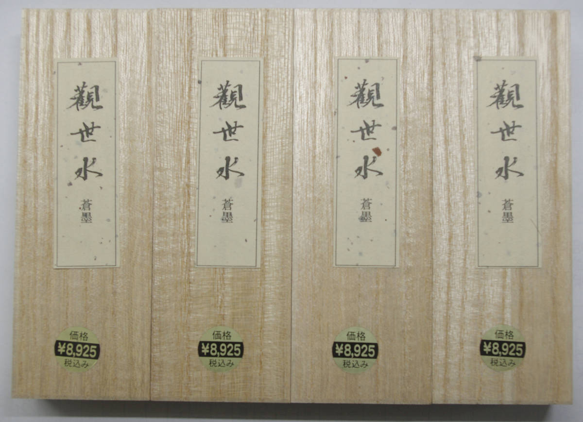 青墨の煤より製墨された「観世水」3丁型3本の出品です。 濃墨では艶を抑えた純黒で 中~淡墨では にじみが綺麗に広がり、立体感が表現できます。 定価8925円になります。 サイズ 約縦114mm横27mm厚さ15mm 重さ約60g 全て未使用 桐箱入りです。 土日は休みの為取引連絡、発送が出来ません。 平日のみの対応になります。