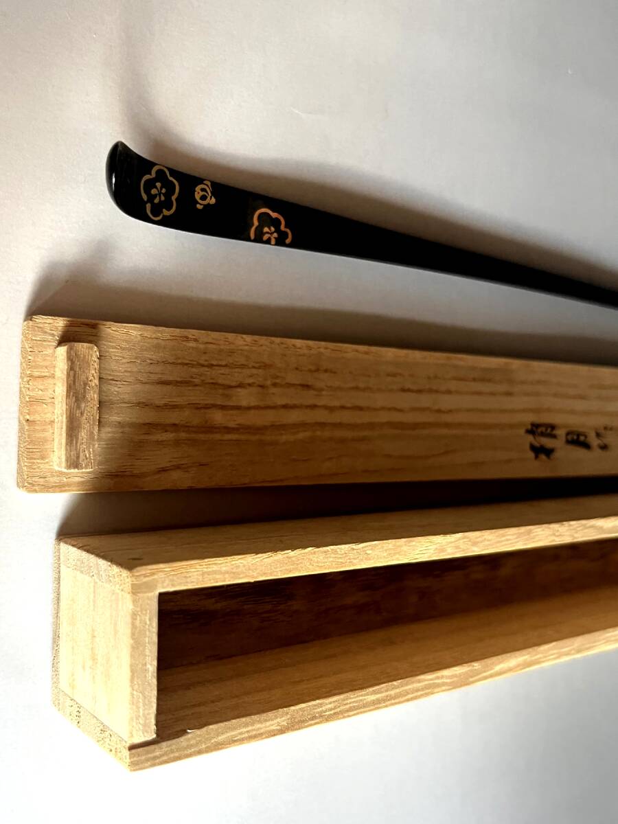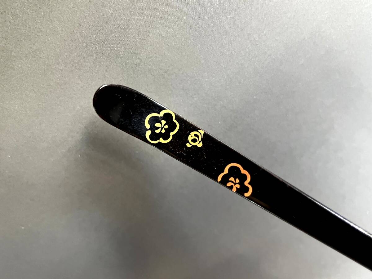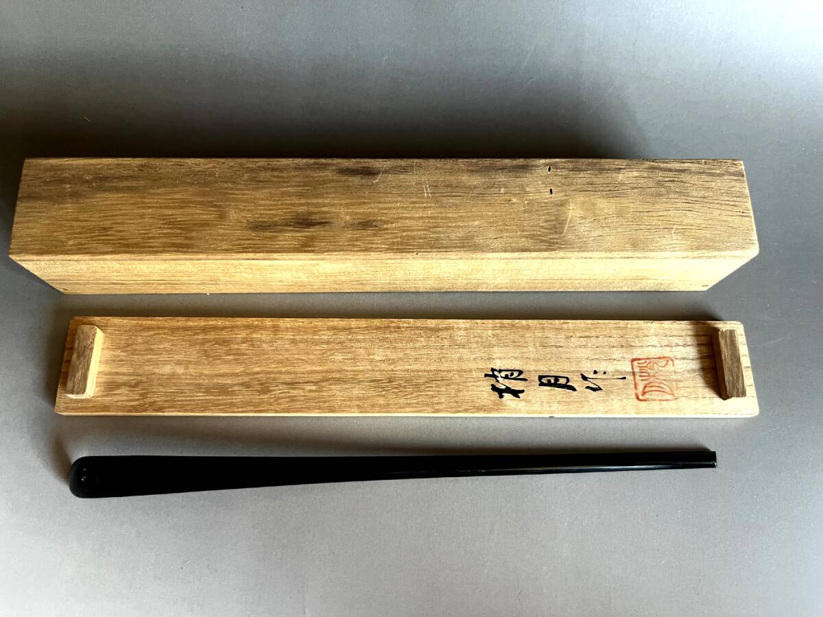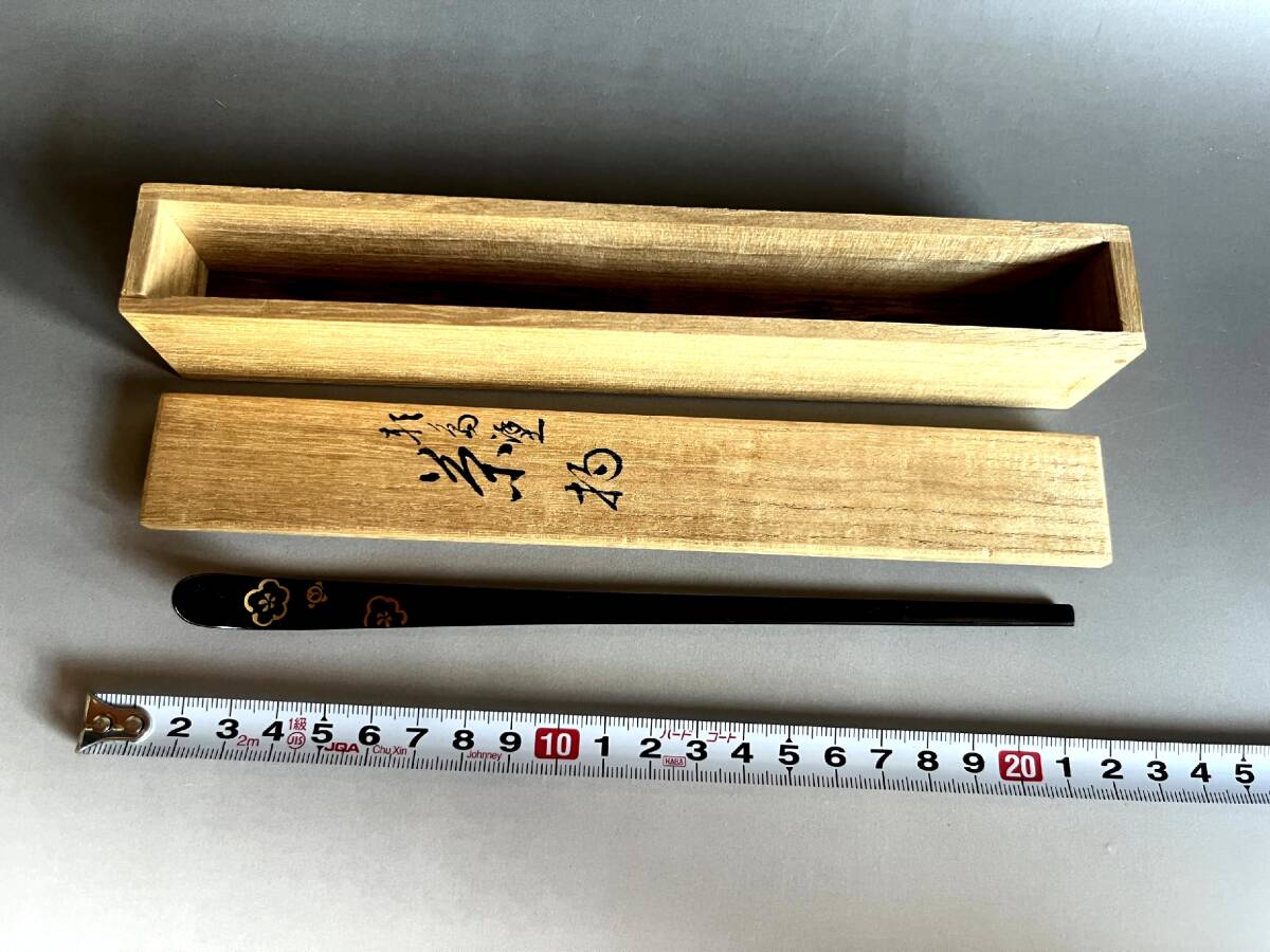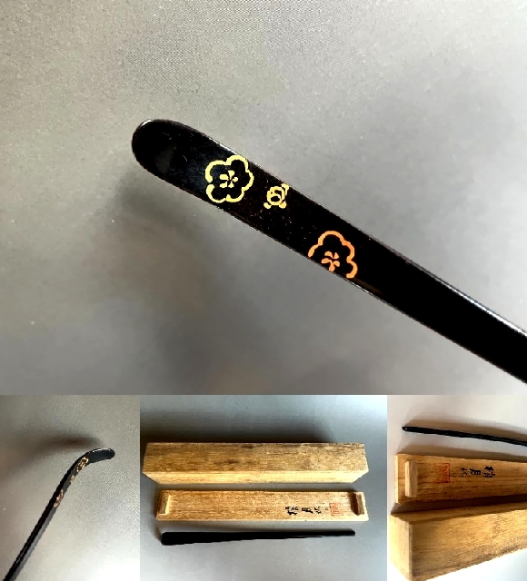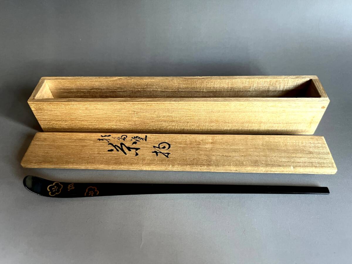 茶杓■輪島塗り 梢月作 梅紋 黒塗り 梅絵 お茶道具 古美術 時代物 骨董品■