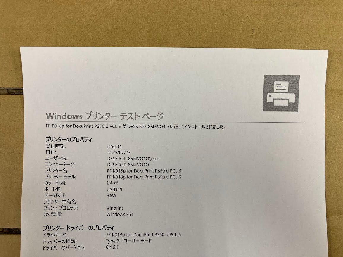 標準トレイ、手差しトレイ印刷動作確認済み。 連続印刷動作確認済み。 自動両面印刷動作確認済み。 USB、LAN動作確認済み。 |