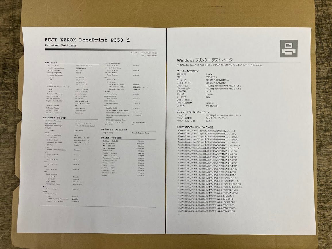 標準トレイ、手差しトレイ印刷動作確認済み。 連続印刷動作確認済み。 自動両面印刷動作確認済み。 USB、LAN動作確認済み。 |
