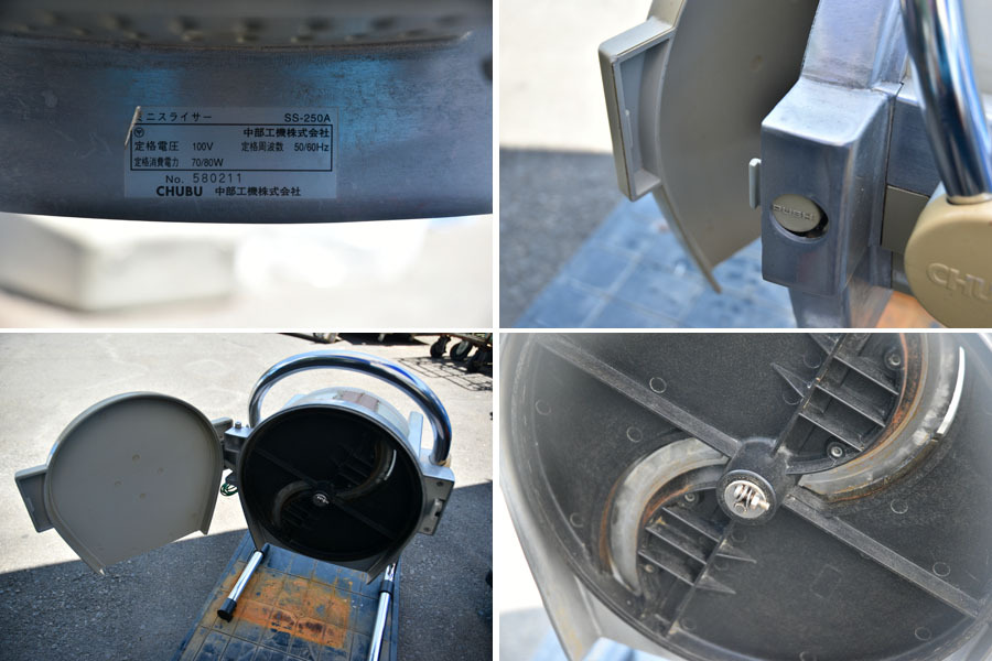 ----------------------------------------------------------------------------------------- ●送料や注意事項は必ずご確認下さい。落札後にトラブルになるケースが増えております。● ◆コンディションは写真・文章にて記載して有りますが、全てのキズの写真は掲載致しておりません。大きなダメージを除き見落とし、記載漏れが有る事はご了承下さい。 ◆当サイトにて出品する商品は多種多彩で、当方商品知識の無い物も多数ありますので落札後の質問やメンテナンス等にはお答えできません。 ◆入札された時点で、画像、文章をご理解していただいたものと判断させていただきます。不明な点は前もってQ&Aからお願い致します。入札後の質問やお電話等でのキャンセルは一切受け付け致しません。 ◆商品説明に「ノークレーム」と記載しているものに関しては、如何なる状況で届いても保証致しません。詳しくは注意事項の「商品到着後について」の最後に記載しておりますのでご確認下さい。 ---------------------------------------------------------------------------------------- 動作はしました。 欠けや割れ、テープ補修、蓋ロックに割れ、刃の固定ネジ無し、脚キャップ片方欠品、その他キズ、サビ、汚れ等あります。 到着後すぐ使える状態ではないので、こちらの商品は、運送事故を含め、ノークレームノーリターンでの出品となります。 修理や交換をして下さい。 台車付属しません。 サイズ 幅31 奥30 高50㎝ | ||