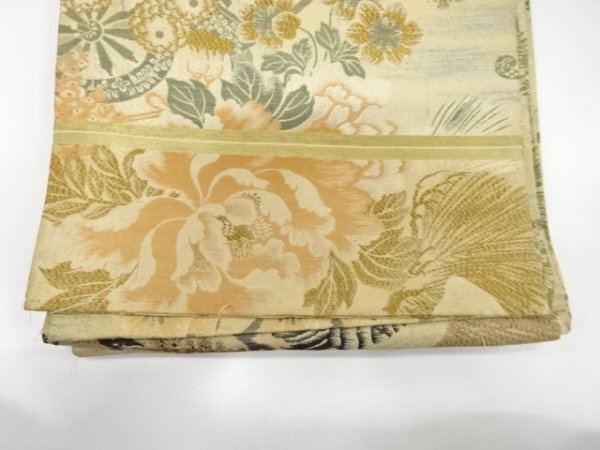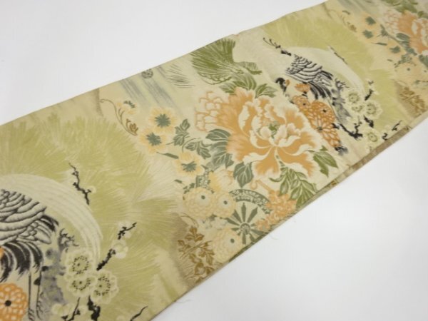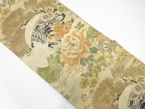 ys7475586; 鶴に牡丹・松梅模様織り出し丸帯(材料)【アンティーク】【着】