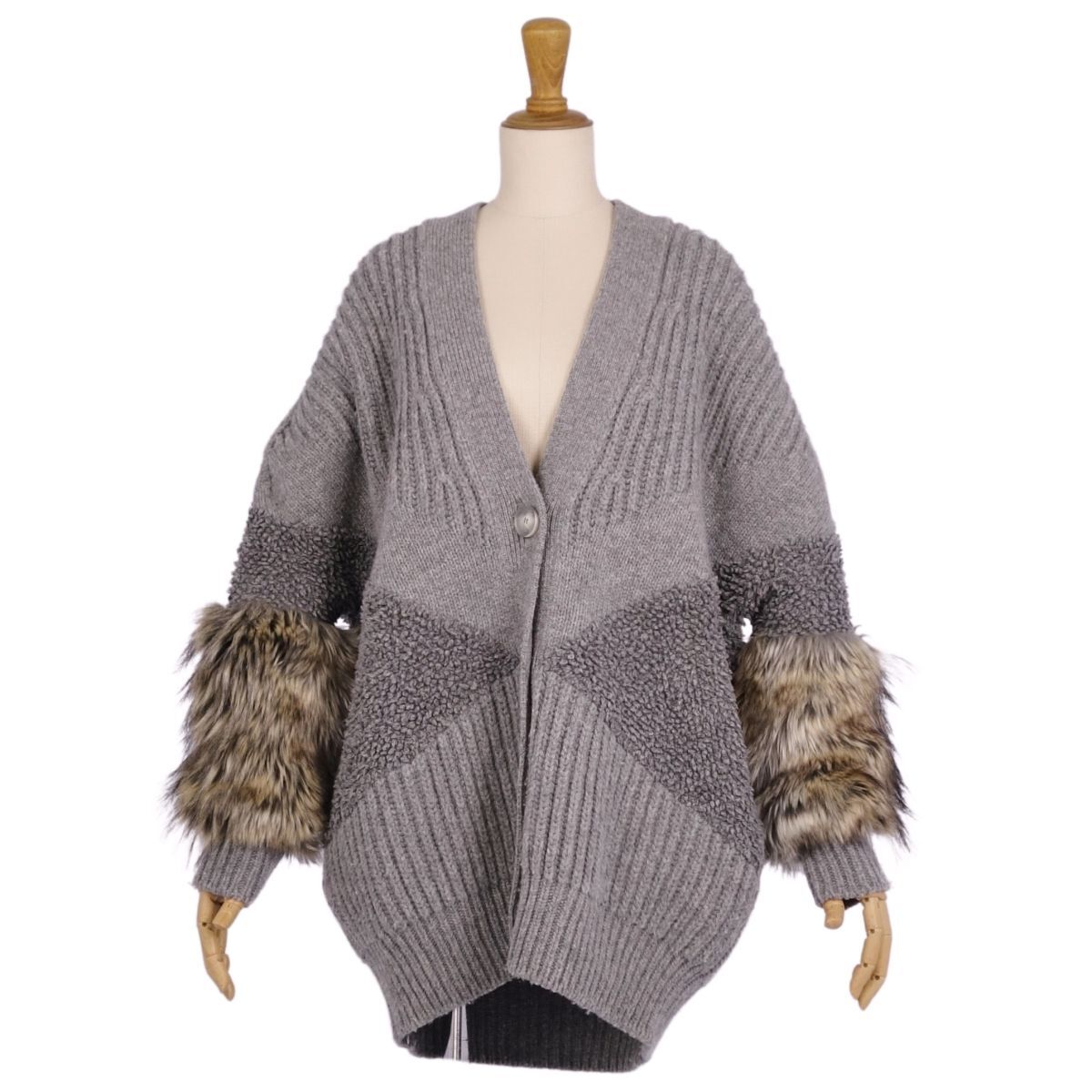 極美品 ステラマッカートニー STELLA McCARTNEY カーディガン ニット ウール エコファー レディース 36(S相当) グレー |