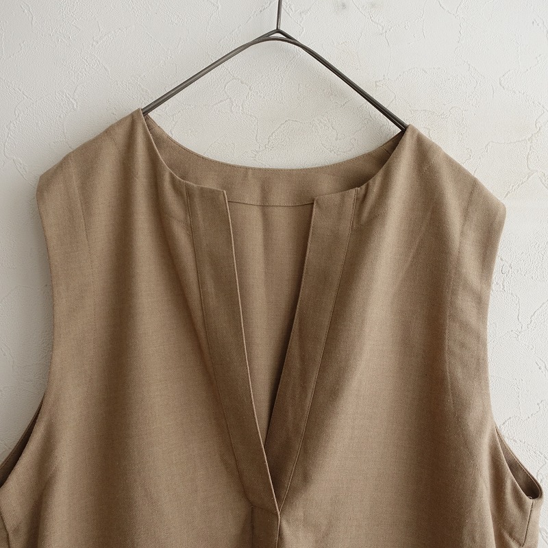 UNITED ARROWS BEAUTY&YOUTHのメランジスリットジャンパースカートです。カラーはベージュで、微起毛素材です。フロント半開オープンのプルオーバータイプで着脱でき、裾両サイドにスリット入りです。腰両サイドにシームポケットがあり、裏地は付いておりません。定価(メーカー希望小売価格)16,500円の商品です。 |