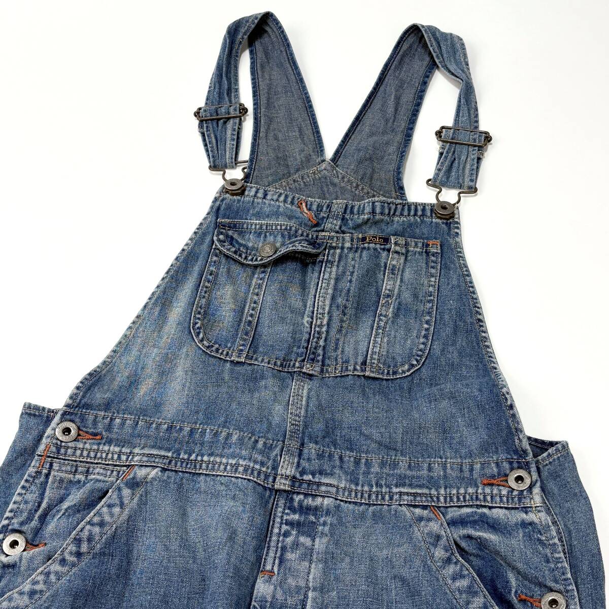 POLO RALPH LAUREN / ポロ・ラルフローレン ヴィンテージ加工 デニムオーバーオール XS ダメージ パッチワーク サロペット メンズ SSM5381