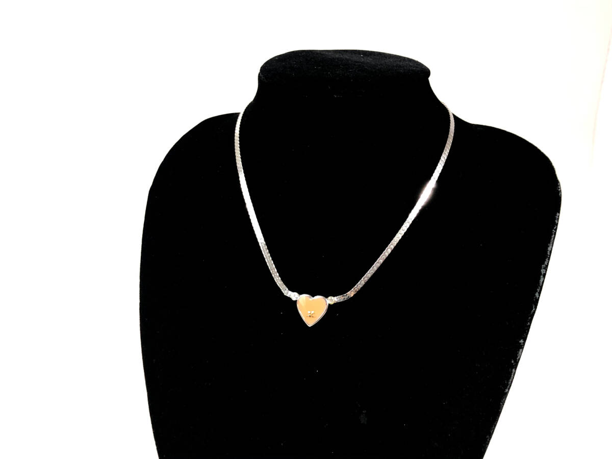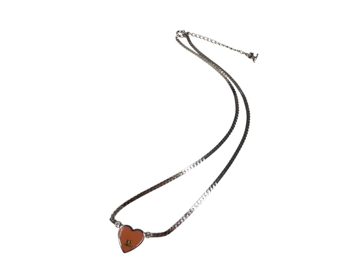 商品名 | ロゴ ハート ラインストーン ヘリンボーンチェーン ネックレス |
