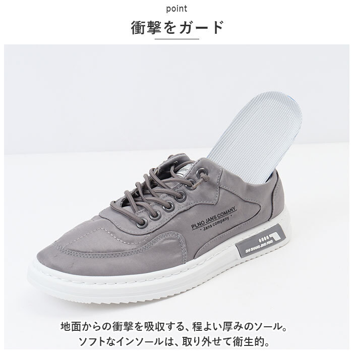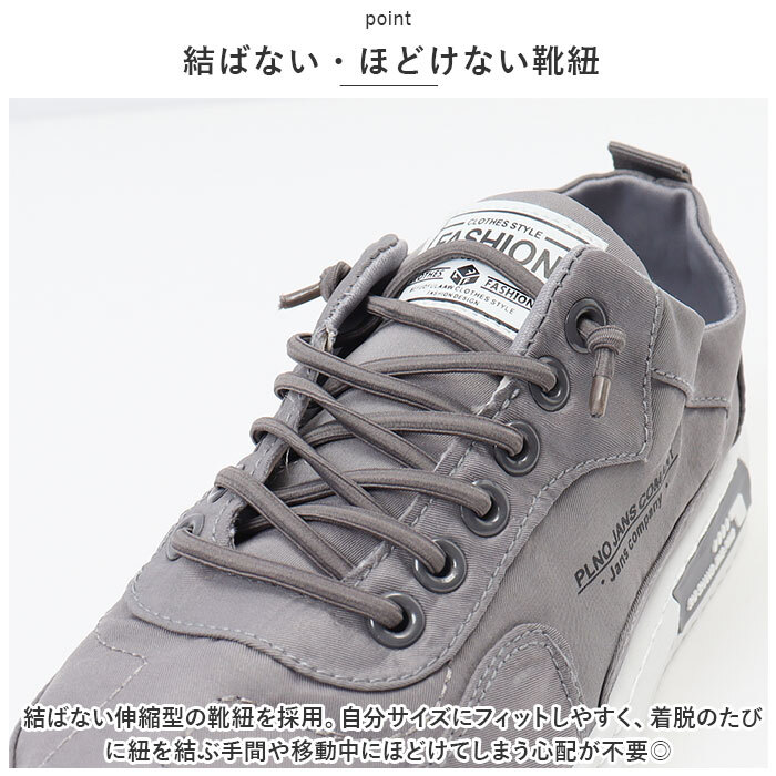 商品説明 | ・・デイリー使いにぴったり。カジュアルコーデに馴染む、メンズスニーカーが新登場。 ・【軽やかな履き心地】 ・足に負担がかかりにくい軽量設計。アクティブに動くシーンや移動の多い日も、ストレスフリー。 ・【結ばない・ほどけない靴紐】 ・結ばない伸縮型の靴紐を採用。自分サイズにフィットしやすく、着脱のたびに紐を結ぶ手間や移動中にほどけてしまう心配が不要◎ ・【足入れがスムーズ】 ・タン部分が大きく開いて、着脱ラクラク。かかとにはプルタブ付き。 ・【衝撃をガード】 ・地面からの衝撃を吸収する、程よい厚みのソール。ソフトなインソールは、取り外せて衛生的。 ・【歩きやすさが向上】 ・屈曲性があり、つま先がやや上を向いた形状。つまづきにくく、蹴り上げやすい! ・【ナチュラルなカラー】 ・コーデを選ばず使いやすい、ナチュラル感漂うカラーをラインナップ。オフの日に履きたい1足☆ |