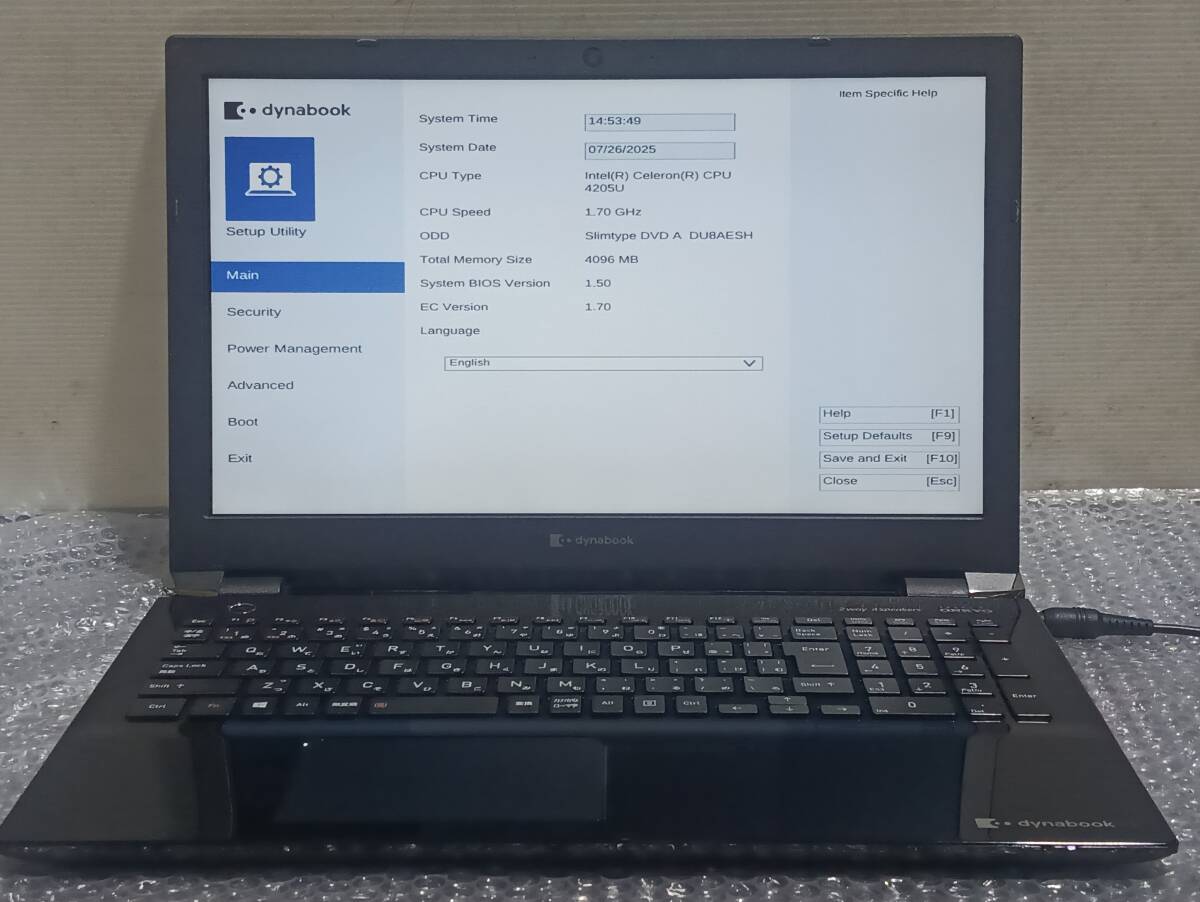 外観破損 バッテリー欠品、TOSHIBA dynabook T Celeron 4205U 4GB 15.6インチジャンク4393