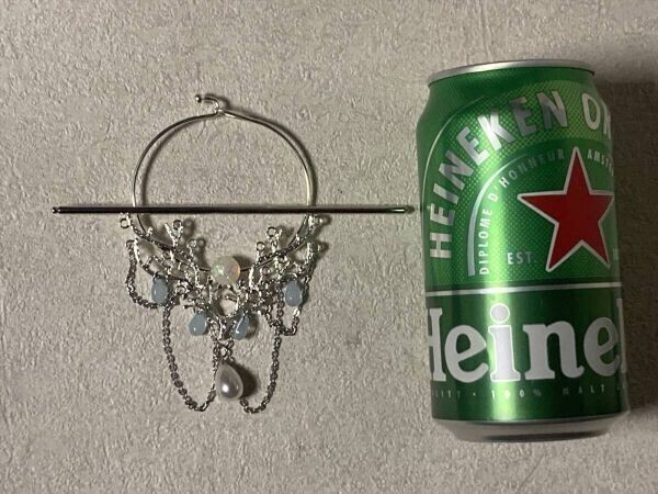 ●おおよそのサイズは、リングが縦116mm/横71mm/重量16g、ピンが長さ120mm/重量7gとなります。