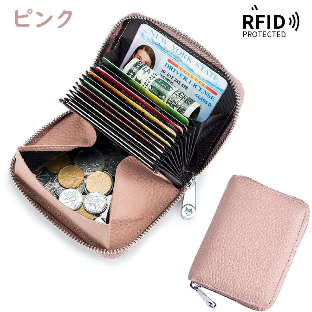 女性 男性 兼用 本革 牛革 蛇腹 カード ケース 収納 30代 40代 50代 60代 高級感 ミニ ウォレット 財布 多機能 薄い カードたくさん 磁気防止 黒 ブラック ベージュ ブラウン ピンク