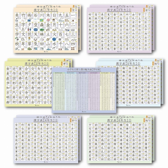 学年別配当表は小学生で習う漢字を学年別に色分けして整理しました。