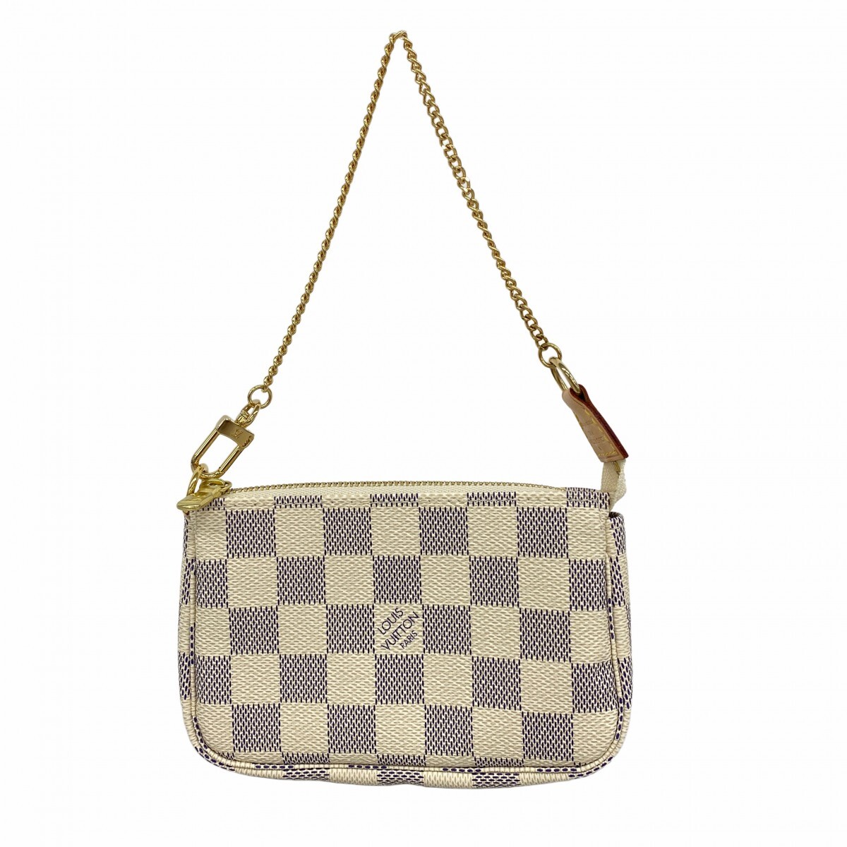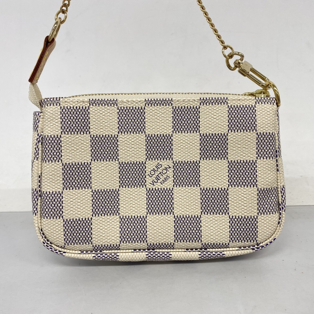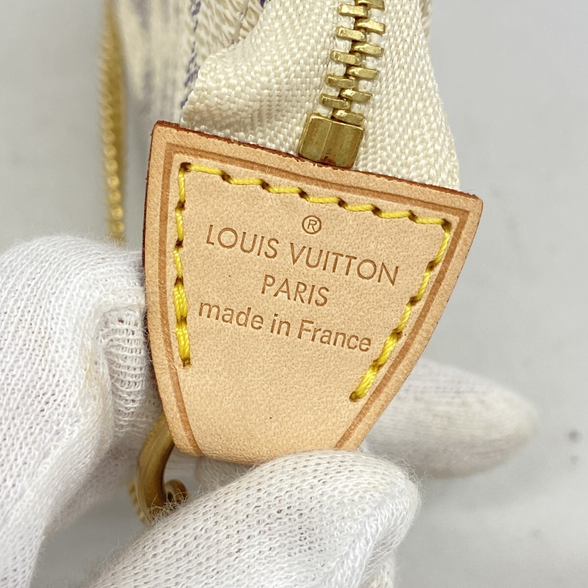 【5gd5416-h】ルイヴィトン ポーチ ダミエ・アズール ミニポシェットアクセソワール N58010 ホワイト【中古】レディース
