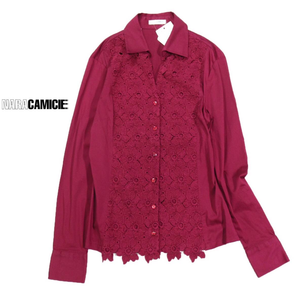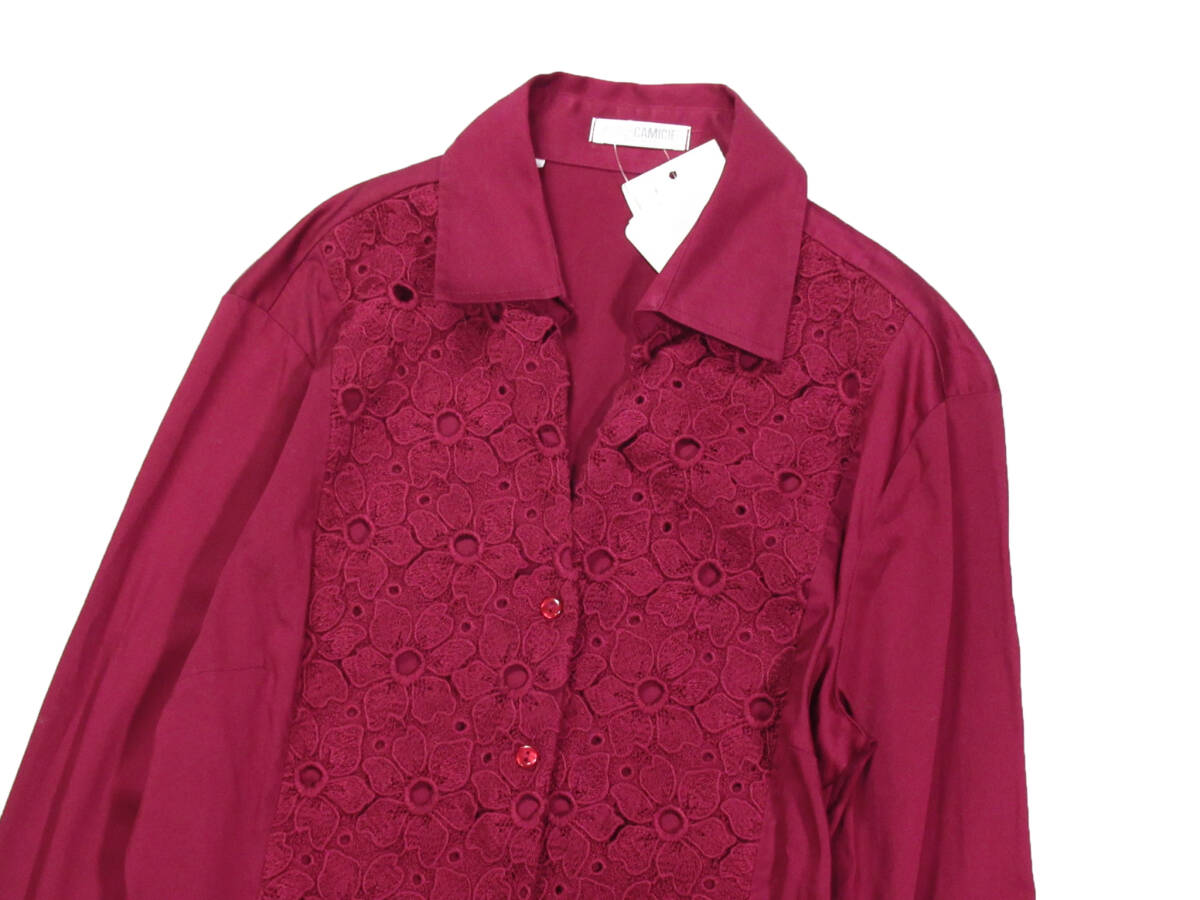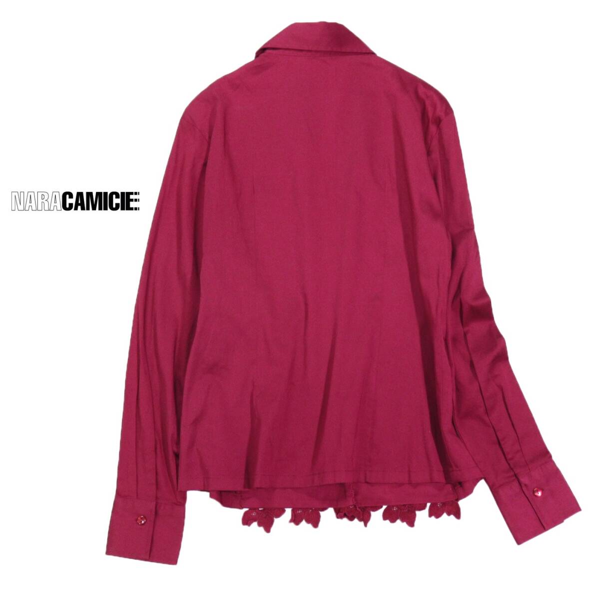 ナラカミーチェ ブラウス サイズ:Ⅰ お色:赤紫系 素材:本体 コットン97 ポリウレタン3 レース部 コットン100% 平置き実寸で 肩幅39 身幅43 着丈57 袖丈57㎝位です。 |