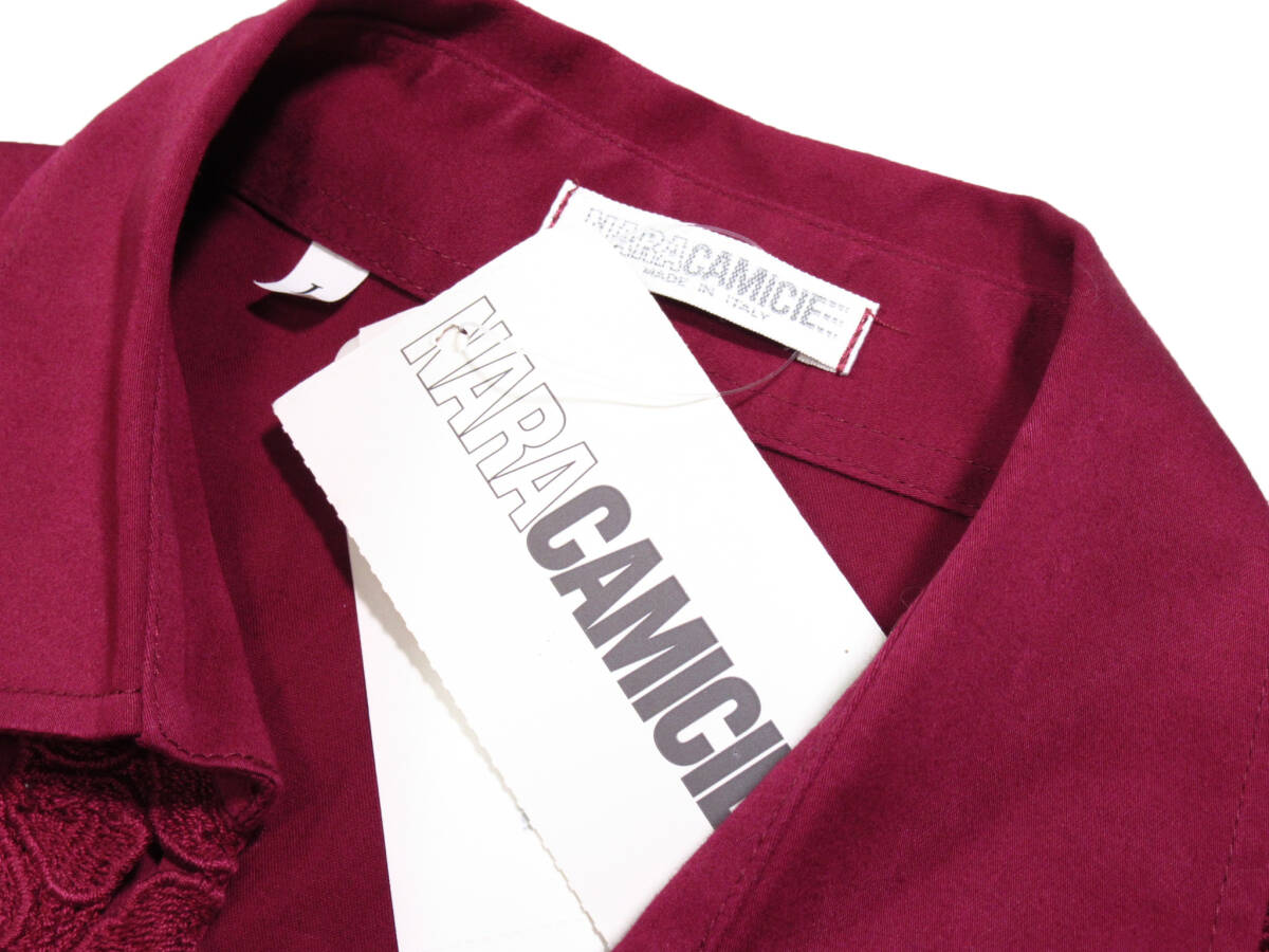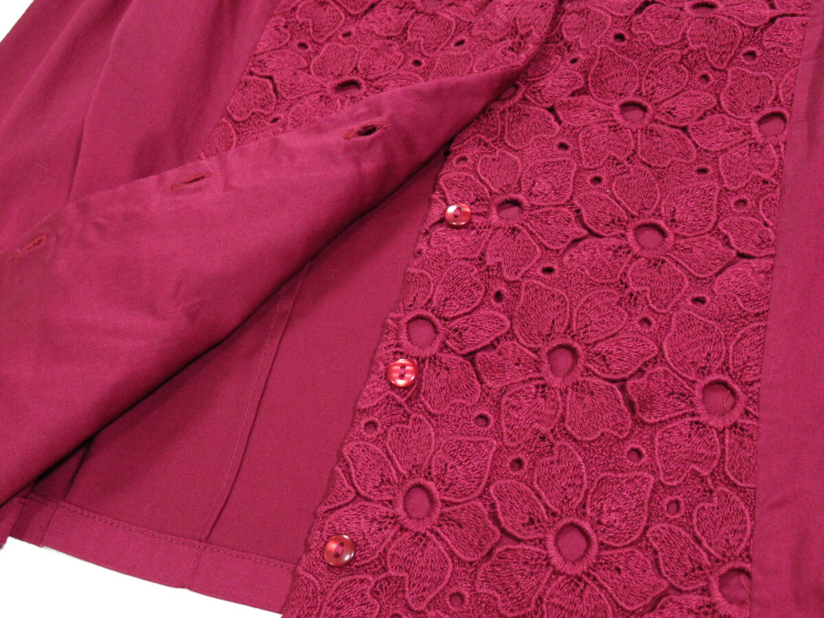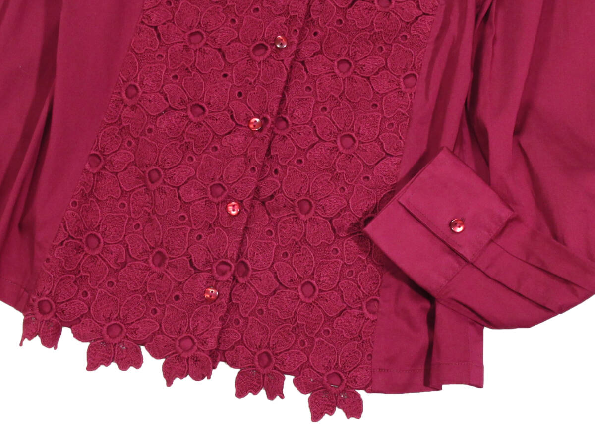 ナラカミーチェ ブラウス サイズ:Ⅰ お色:赤紫系 素材:本体 コットン97 ポリウレタン3 レース部 コットン100% 平置き実寸で 肩幅39 身幅43 着丈57 袖丈57㎝位です。 |