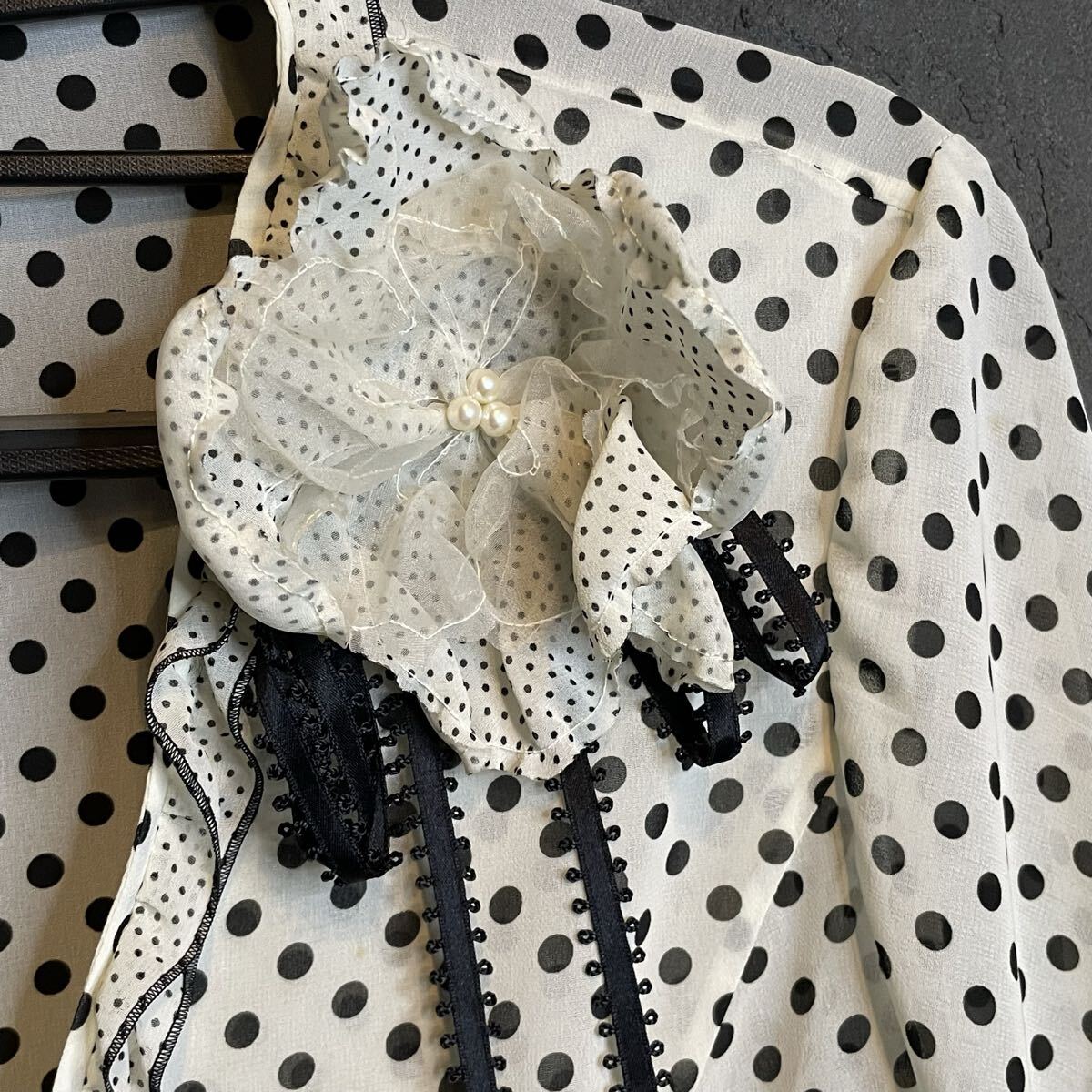 ◇アイテム名 ドット柄フリルブラウス コサージュ付き