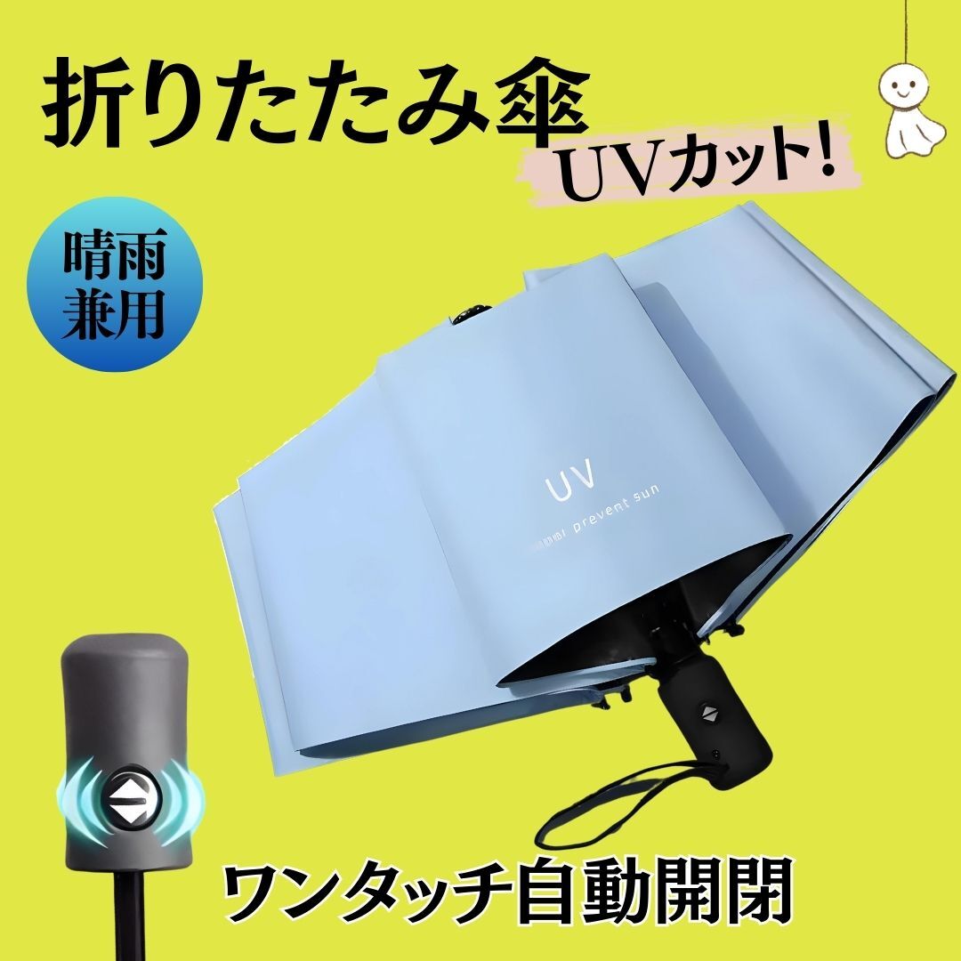 折りたたみ傘 ブルー 青 水色 日傘 晴雨兼用 UVカット 遮光 ワンタッチ自動 8本 梅雨対策 完全遮光 日焼け止め 日焼け防止 紫外線 撥水