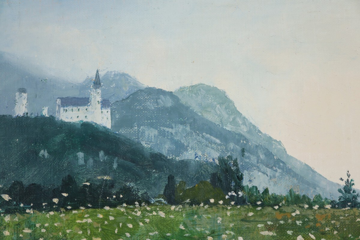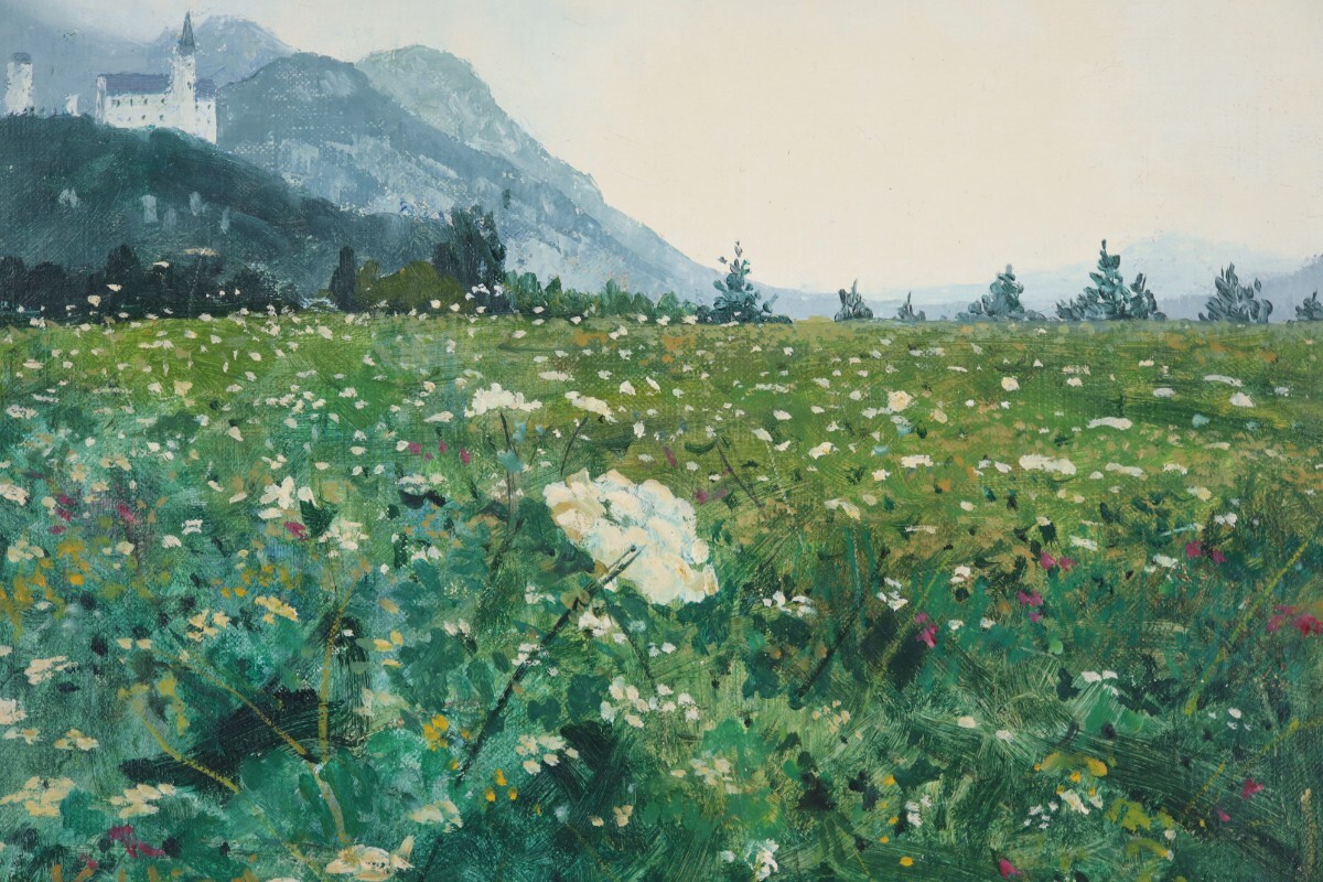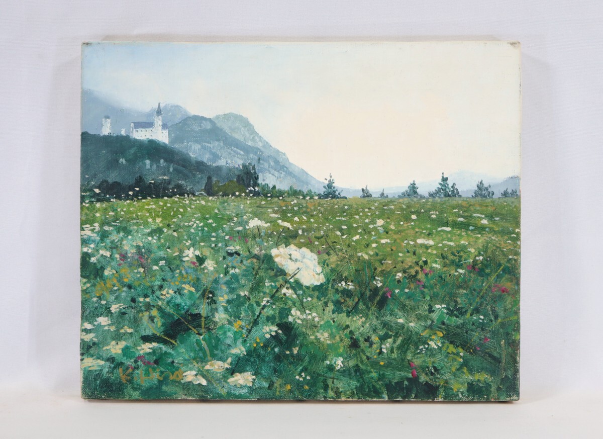 真作 平井和夫 油彩「ドイツ フッセン」画寸F3 兵庫県出身 二元会会員 川田茂に師事 独南東部 豊かな自然とノイシュバンシュタイン城 11212
