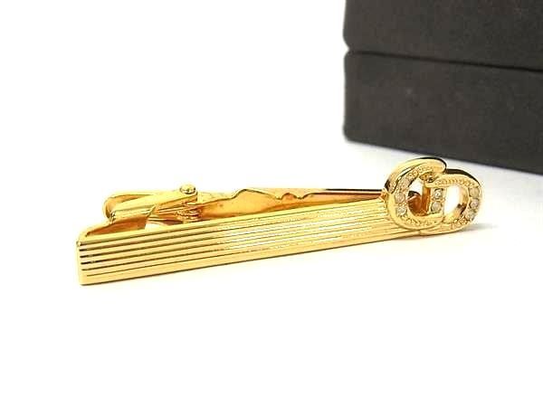 ■美品■ ChristianDior クリスチャンディオール ラインストーン タイクリップ タイピン アクセサリー ゴールド系 DE9680