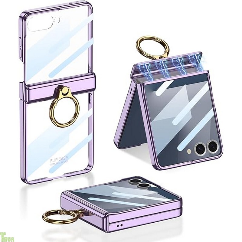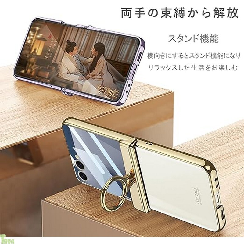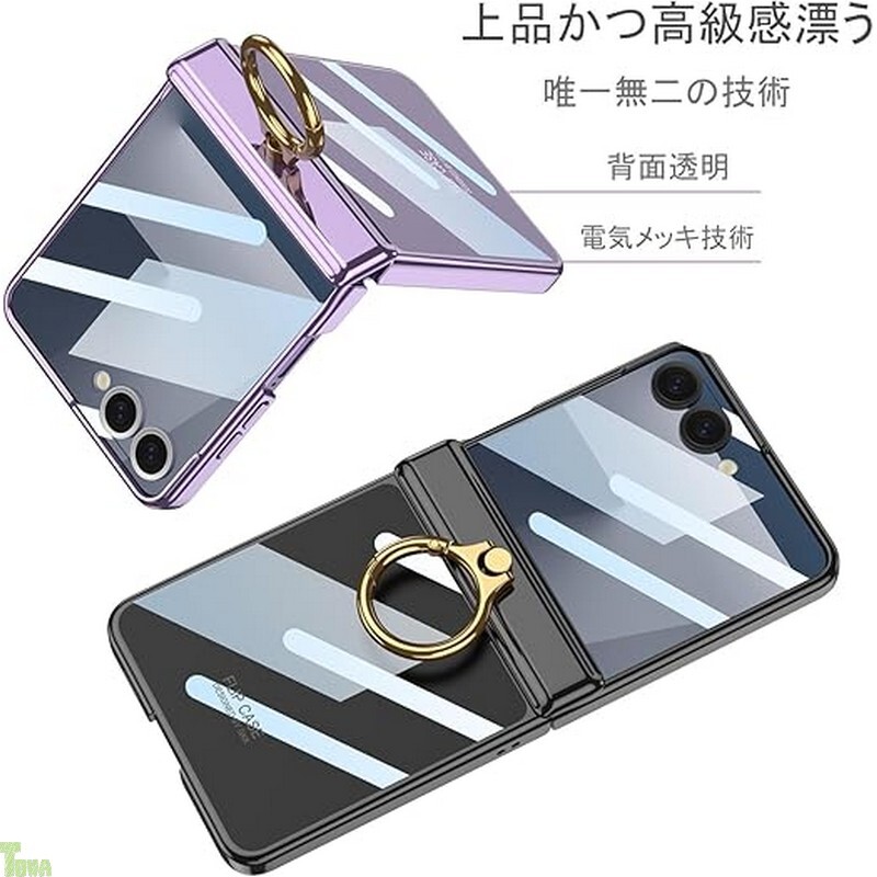 パープル 背面クリア リング付き 高品質 PC 素材 スタンド機能 ギャラクシー フリップ Galaxy Z Flip 7 保護 バンパー ケース カバー