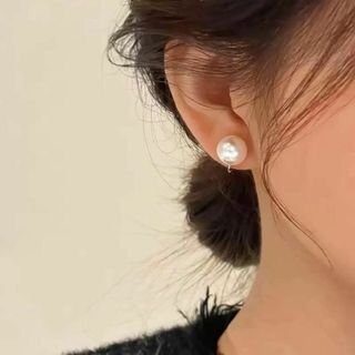シンプルでエレガントな8mmパールイヤリング、どんなスタイルにも合わせやすい。