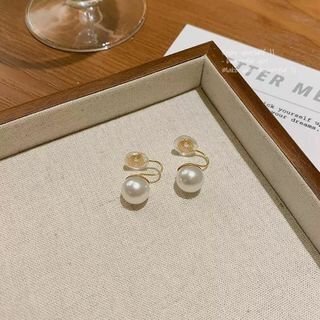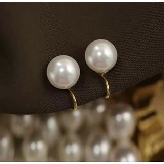 パールのイヤーカフ、ホワイトカラーでエレガントな印象。