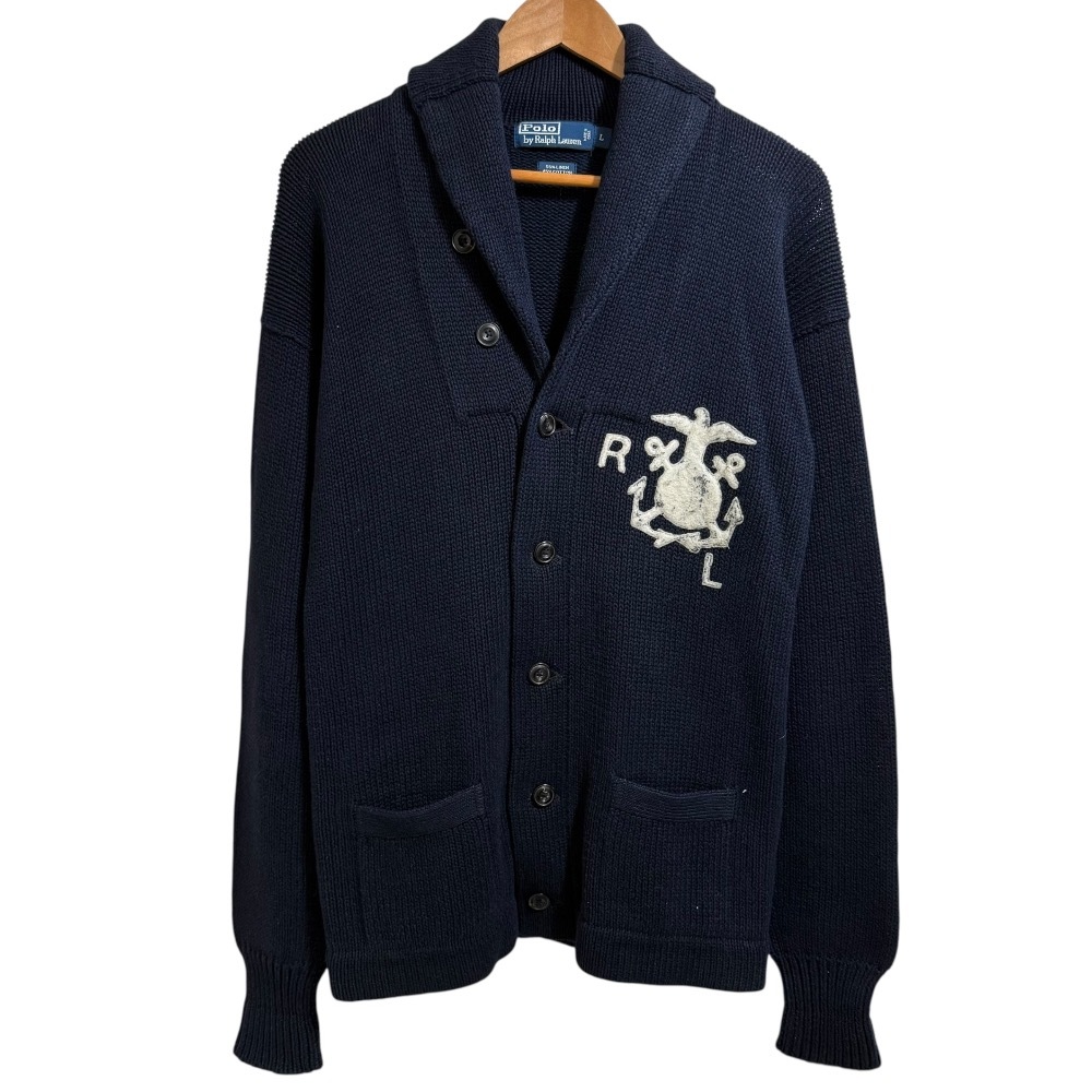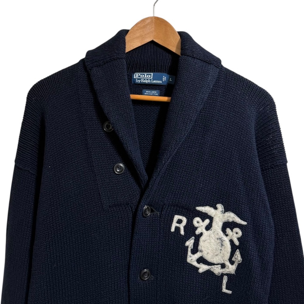 商品名:Polo by Ralph Lauren ポロバイラルフローレン リネンショールカラー ニット カーディガン サイズL ネイビー