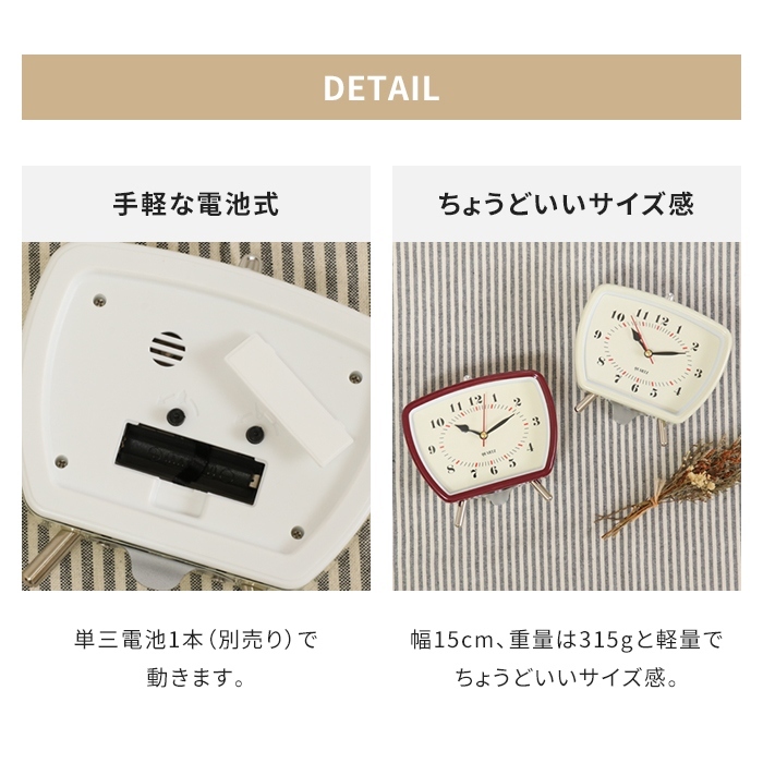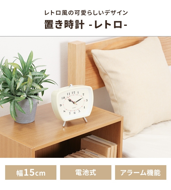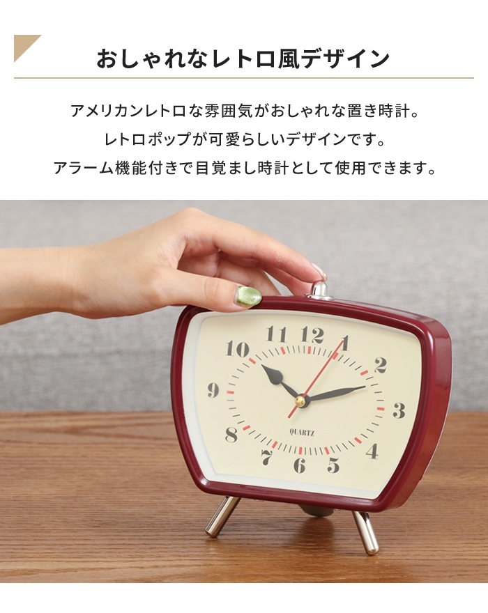 | 置き時計 目覚まし時計 見やすい 幅13cm レトロ風 アラームクロック インテリア 雑貨 ベッド脇 卓上 おしゃれ 小物 可愛い アラーム時計 クロック とけい めざまし時計 時計 置時計 アナログ アラーム音 大音量 静音秒針 カチカチならない モノトーン シンプル リビング 寝室 子ども部屋 新生活 レッド ホワイト |