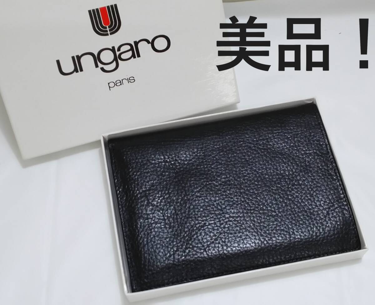 KB【丸-1459】■■美品■ungaro paris■パスポートケース■ 黒/箱付き/ウンガロ■(IS) |