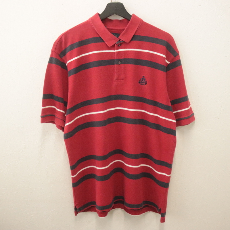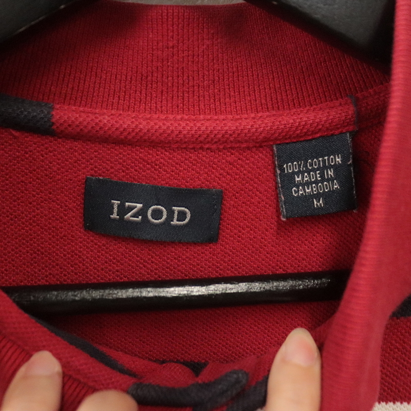 S747 2000年代製 IZOD アイゾッド 半袖ポロシャツ■00s 表記Mサイズ 赤 レッド カノコ ボーダー アメカジ ストリート 古着 古着卸 激安
