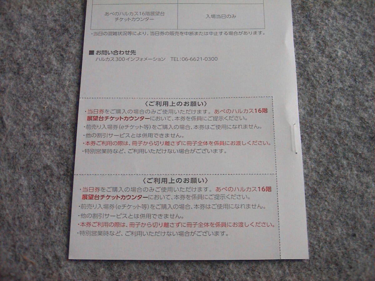 あべのハルカス展望台「ハルカス3000」の入場ご優待券が、2枚、です。