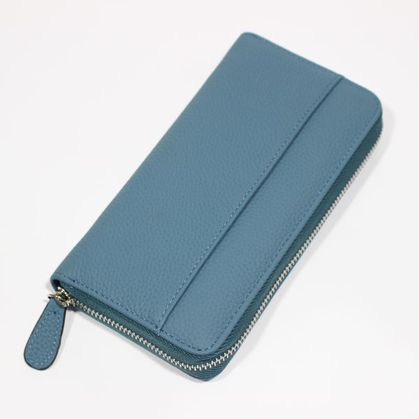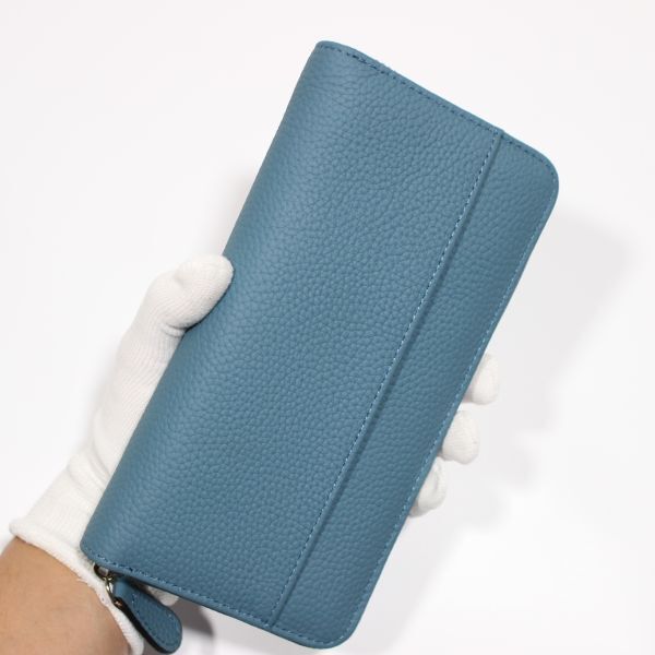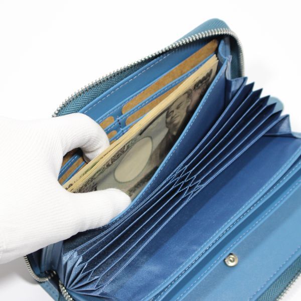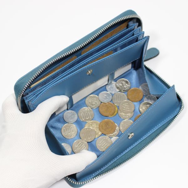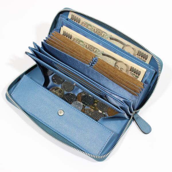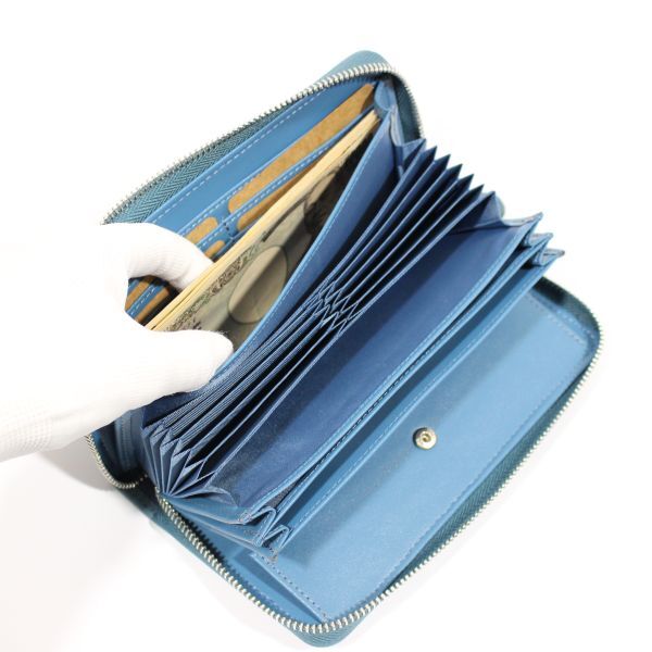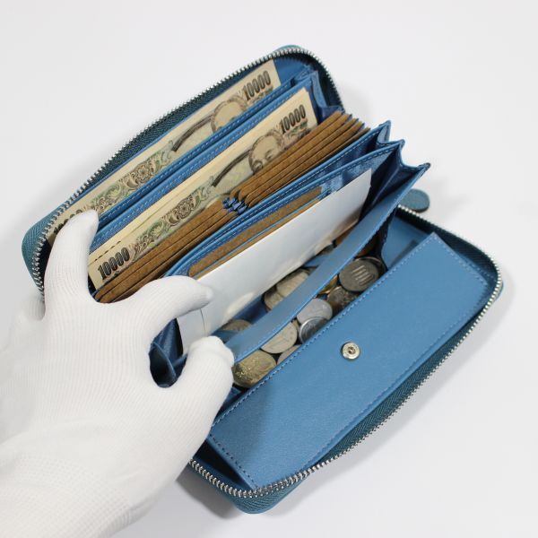 【新品 送料無料】大容量収納 長財布 メンズ レディース 本革 イタリアンレザー 財布 カード 小銭入れ ブルー 男女兼用 金運 風水