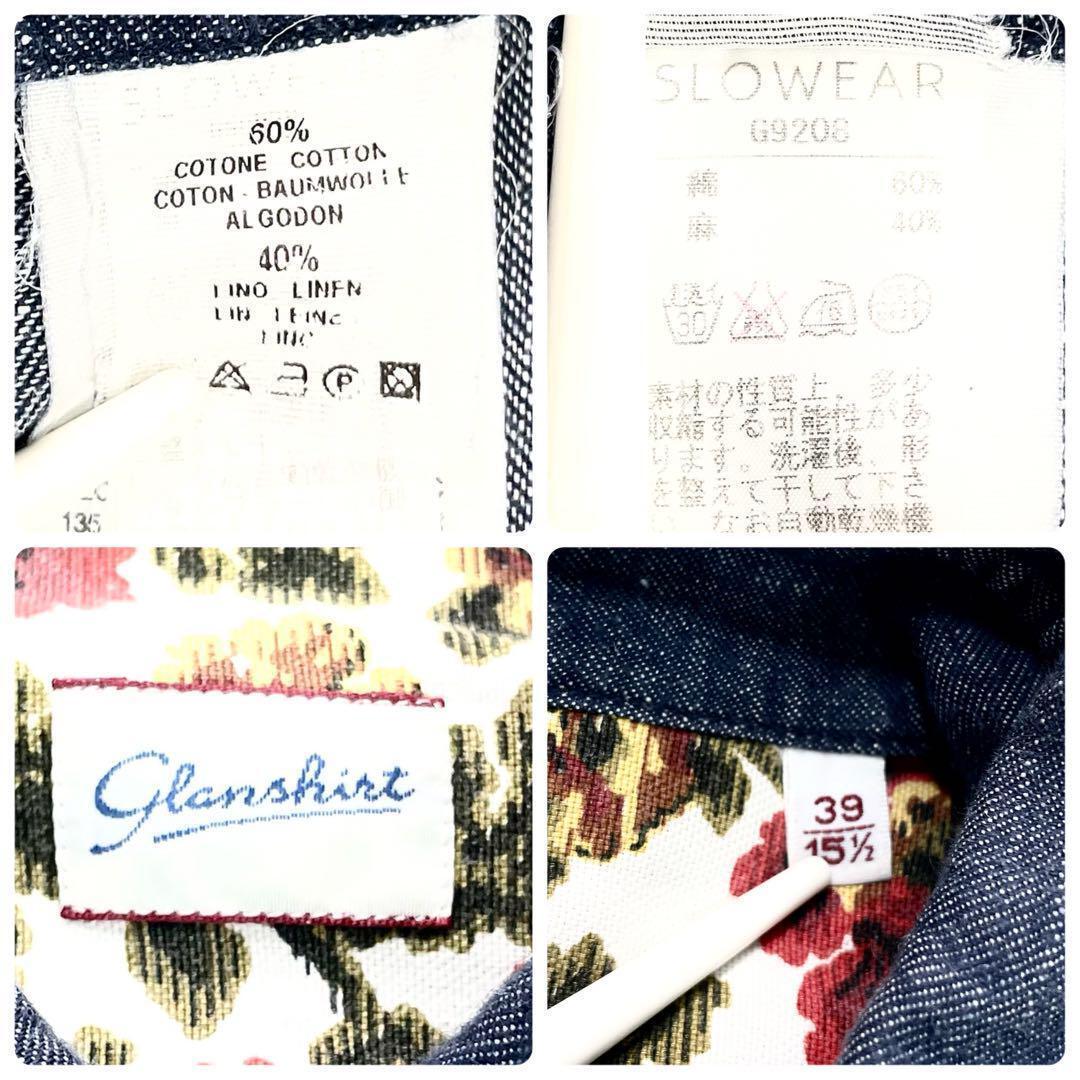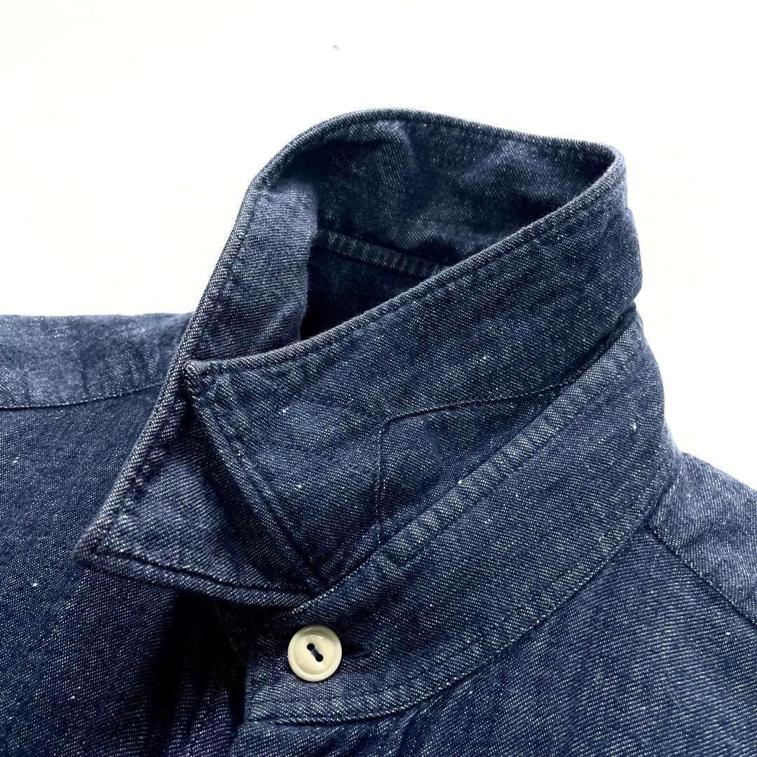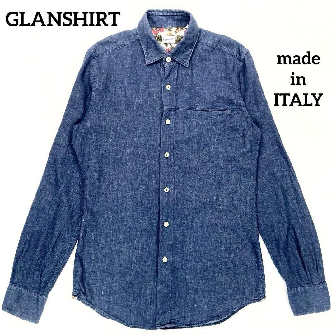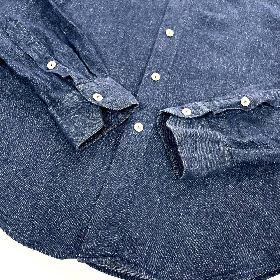 イタリア製 グランシャツ 麻×綿 ライトオンス デニムシャツ M インディゴ