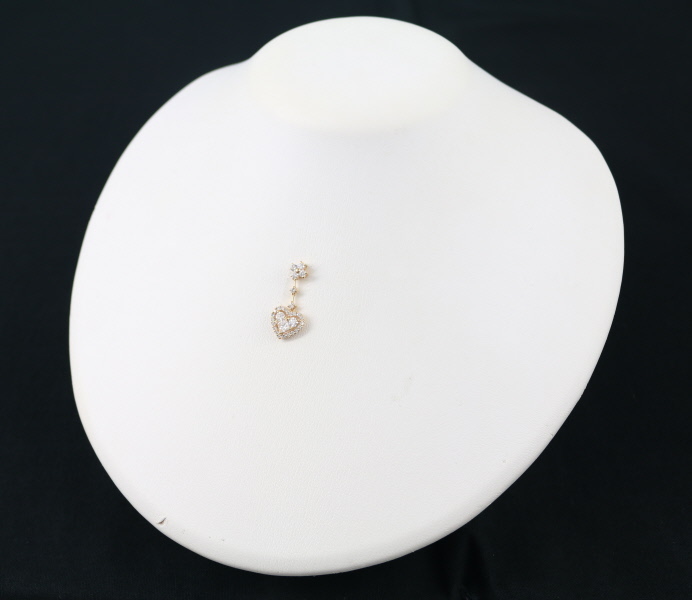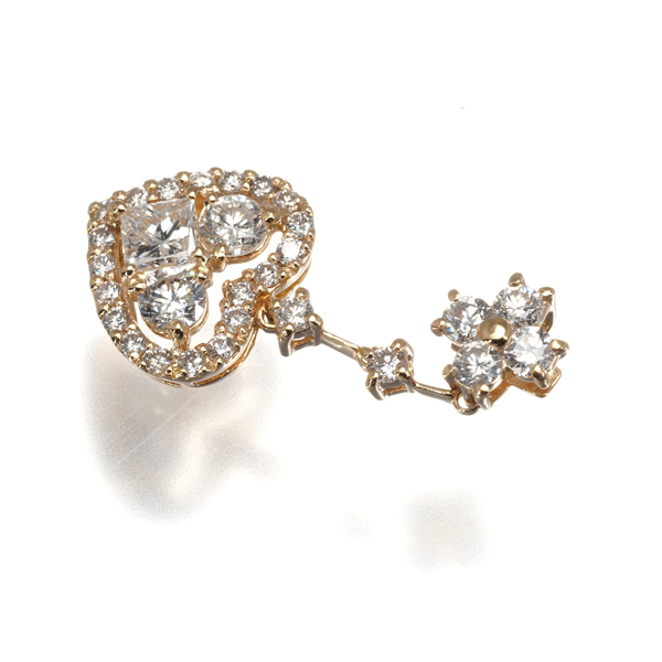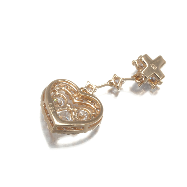 多少の内包物が見らる石もございますが、胸元ではまず気にならないレベルの瑞々しさ溢れる2種カットのダイヤモンドを贅沢にセッティング。ハートモチーフから華やかな輝きが放たれる上品なペンダントトップです。 |