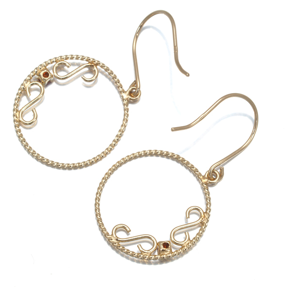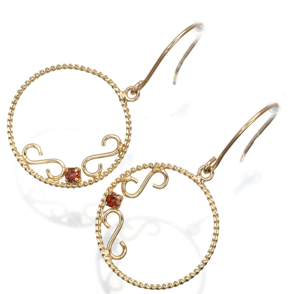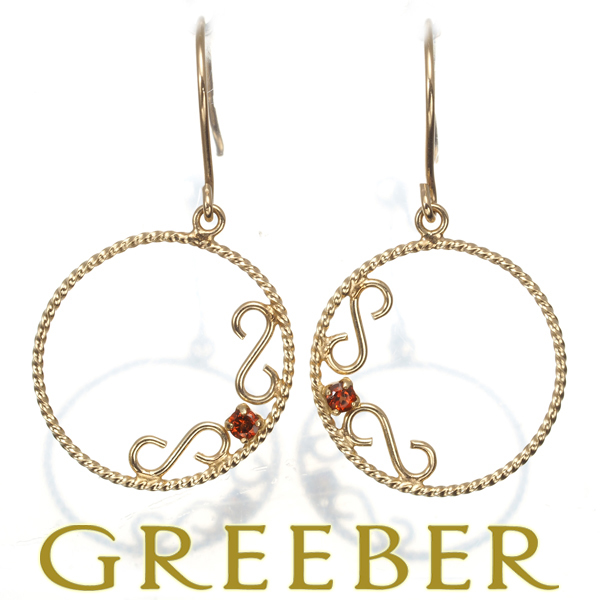 一石のガーネットを飾ったサークルデザインのピアスジュエリーです。 |