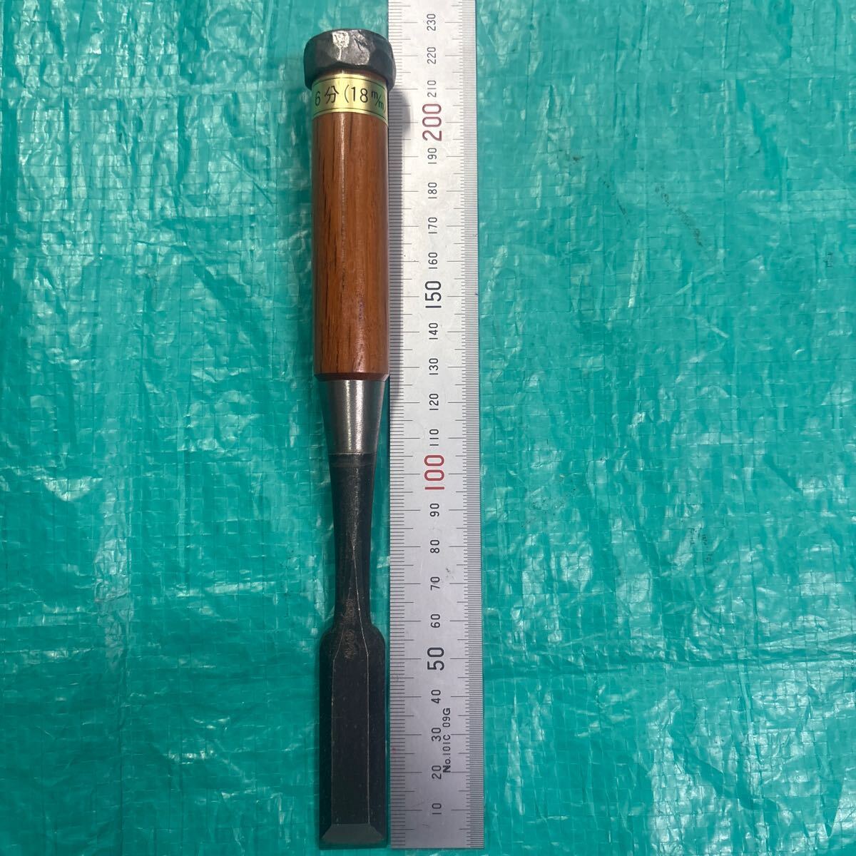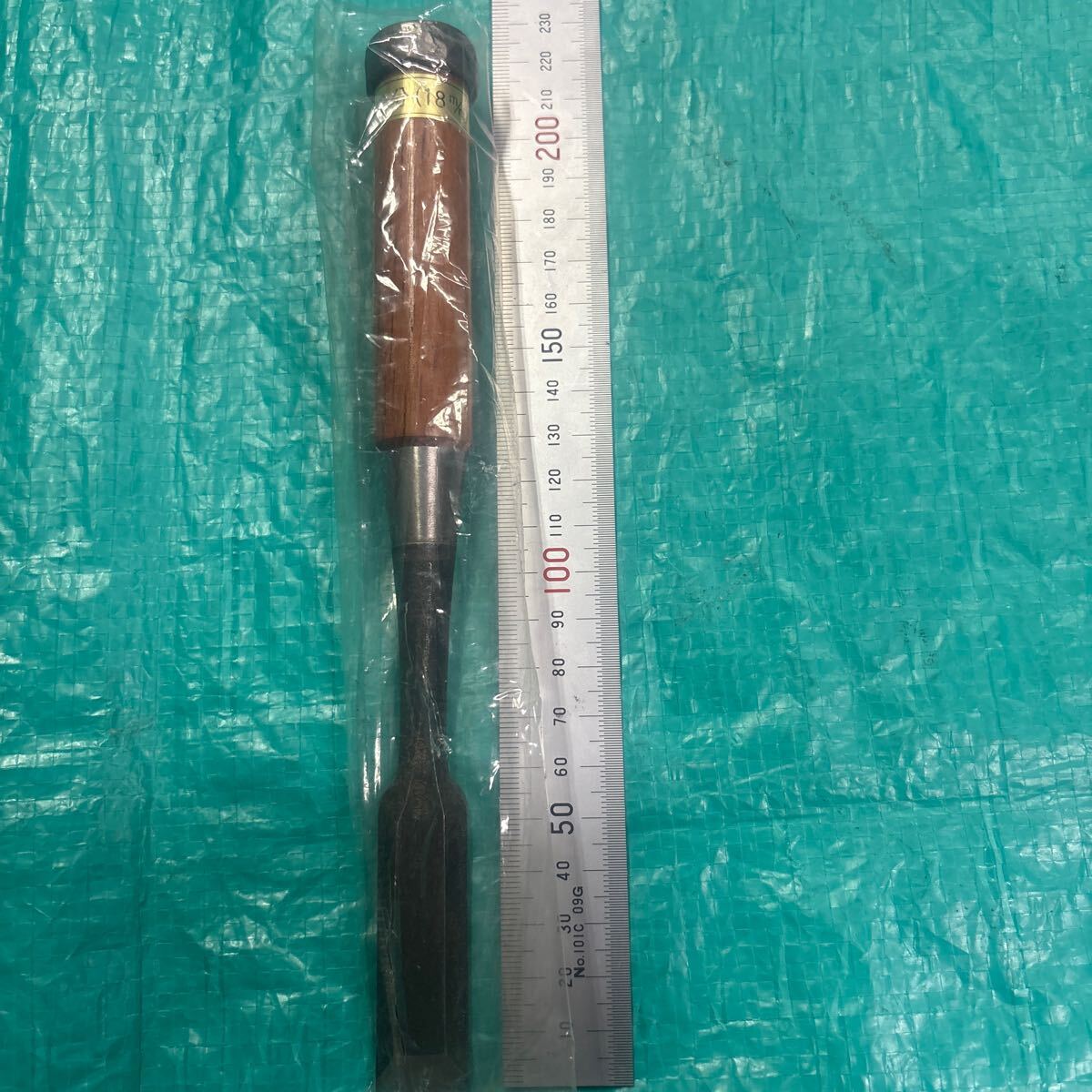 かず弘、追入鑿6分、18mm、未使用、保管品です。他の鑿と見分ける為にマジックでかつらに印が付いている状態です。燕三条刃物。