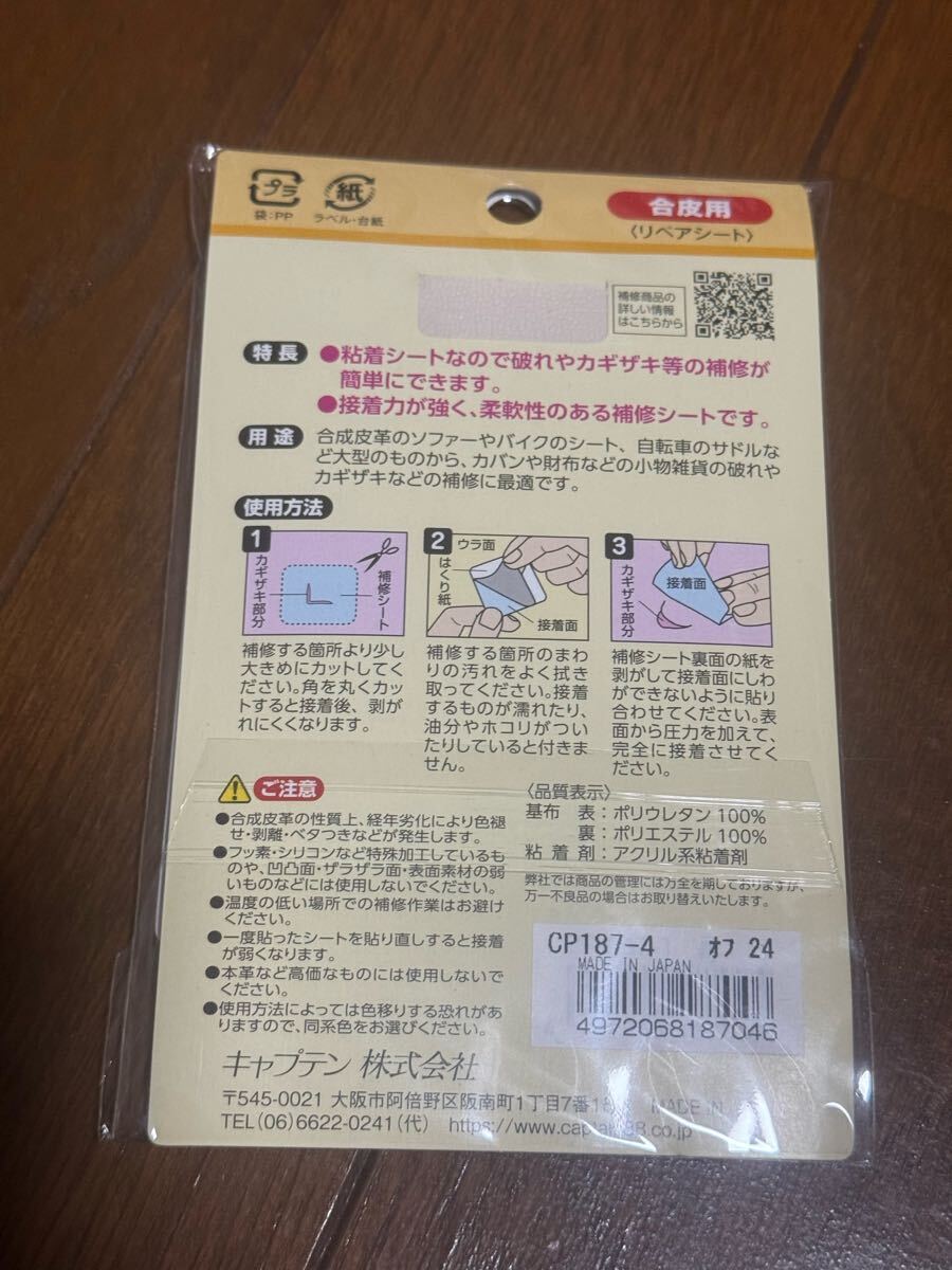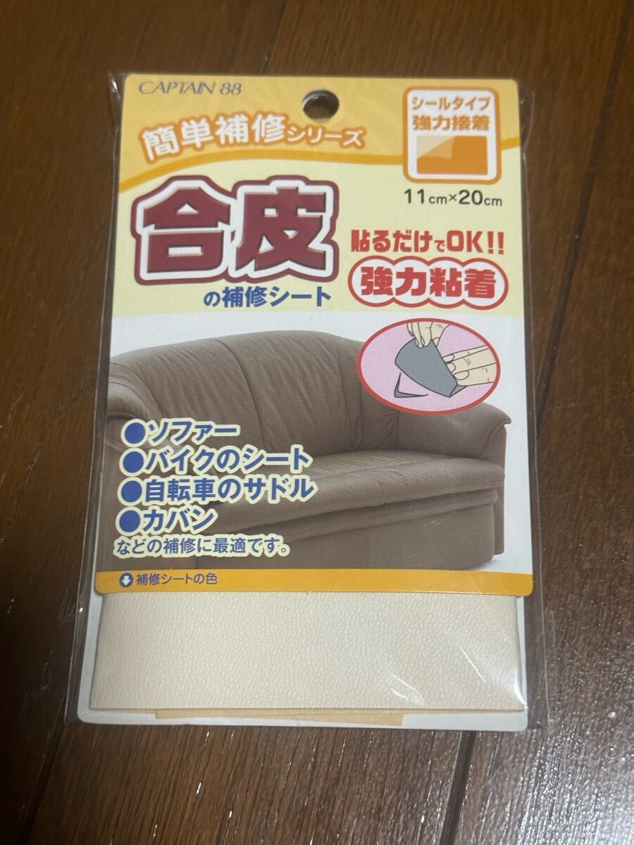 新品未開封 キャプテン 88 合皮 補修シート シールタイプ 強力粘着 かんたん補修シリーズ 11×20cm リペアシート アイボリー